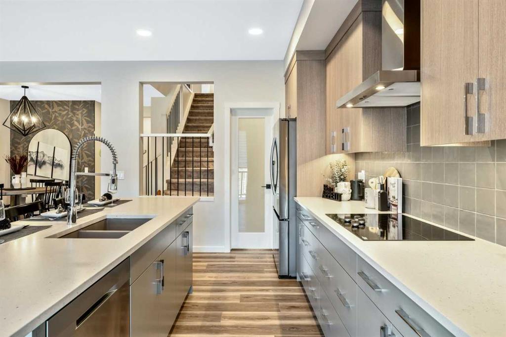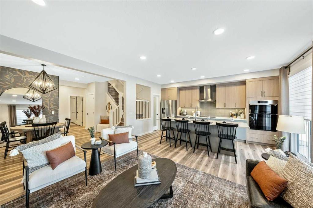 Welcome to your new home! The "Maeve", expertly crafted by Bedrock Homes, is situated in the community of Osprey Hill; one of Calgary's newest and most desirable communities. Thoughtfully designed, this home offers spaces for friends & family to gather & share special occasions; as well as providing private areas to retreat to, and relax in. Tentatively scheduled to be completed in April of 2026. Gateway to mountain living with quick, convenient access to Canmore and Banff via Highway 1. Desirable walkout lot offering abundant natural light and seamless indoor-outdoor living. Walkout basement with extended concrete patio—ideal for entertaining or potential future development. Included 12’ x 10’ rear deck, providing additional outdoor living space. Upgraded kitchen features a chimney-style hood fan and full-height cabinetry to the ceiling. Luxurious 5-piece ensuite with dual vanity, soaker tub, and tiled walk-in shower. Spacious bonus room ideal for a family lounge, playroom, or media room. Versatile Main-Floor Flex room perfect for a home office, study, or additional living space. Expansive laundry room offering a refined design, custom sink, and side-by-side washer and dryer. 9’ knockdown ceilings on the main floor enhance the open, airy feel. Elegant railing with modern metal spindles throughout. Convenient walkthrough mudroom connected to a walkthrough pantry. 9’ basement foundation. All photos are representative.