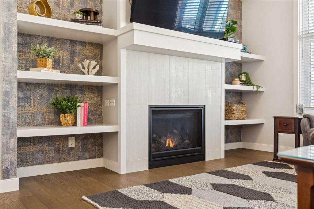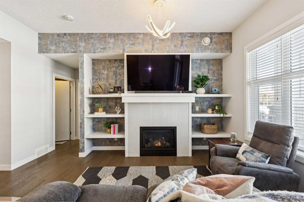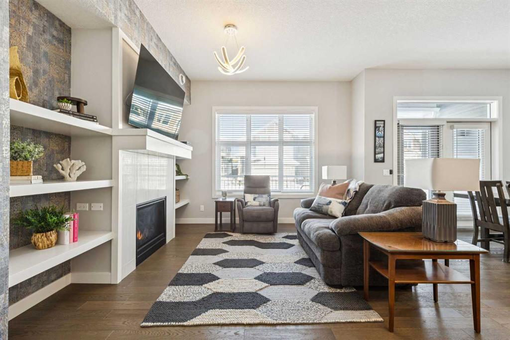 This is the kind of home that makes you exhale the second you step inside. Welcome to effortless bungalow living in the heart of Silverado. A home that perfectly blends comfort, style, and low-maintenance ease in one beautifully designed space. From the moment you walk in, you’ll feel the warmth and openness of this bright 3-bedroom villa, where natural light pours through large windows and an inviting open-concept layout creates a sense of calm and connection throughout. The main living area is both stylish and welcoming, anchored by a stunning gas fireplace and a striking focal wall with custom built-ins that add character, function, and a beautiful architectural statement. Warm hardwood floors flow seamlessly through the space, while the thoughtful layout makes everyday living and entertaining feel completely effortless.