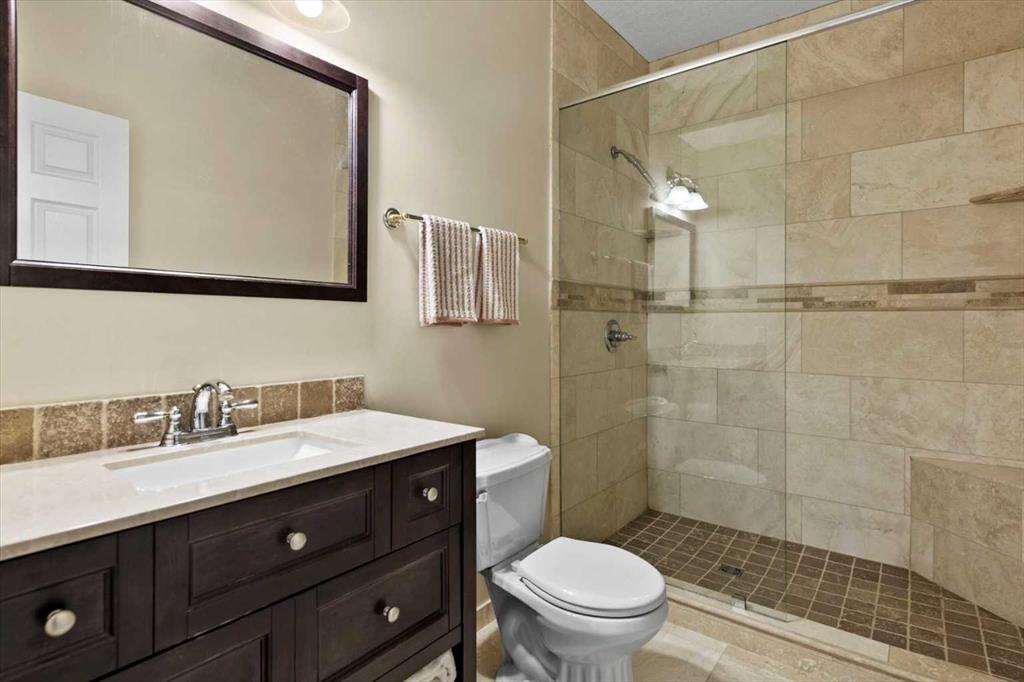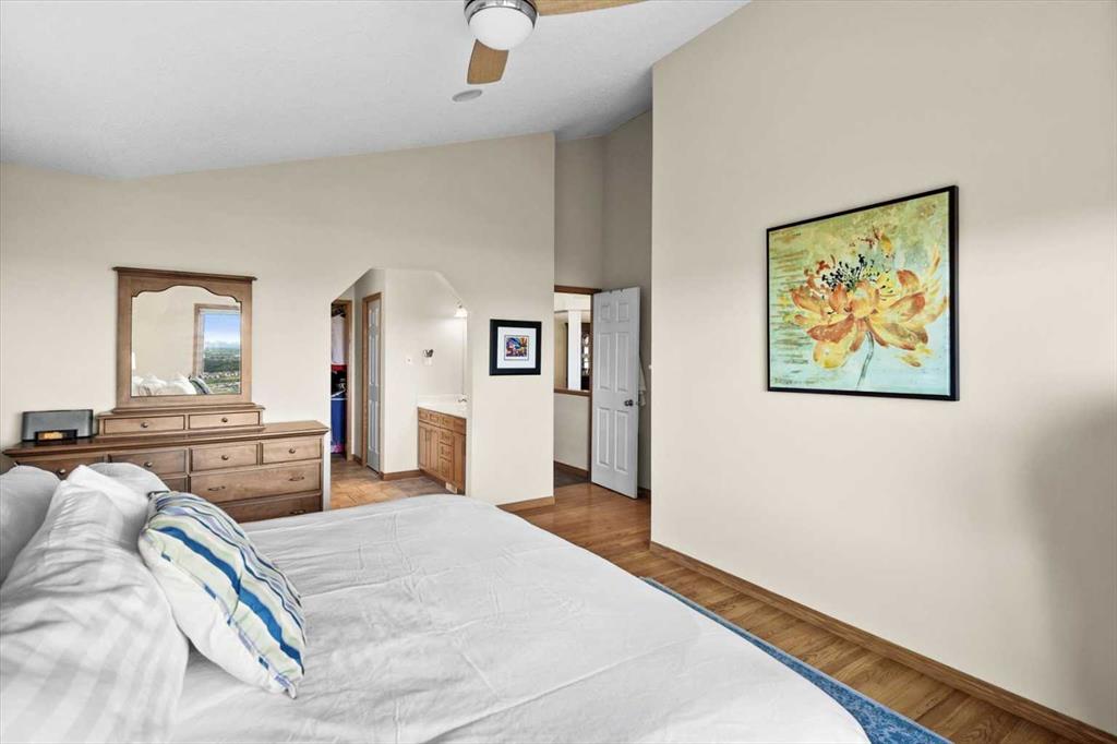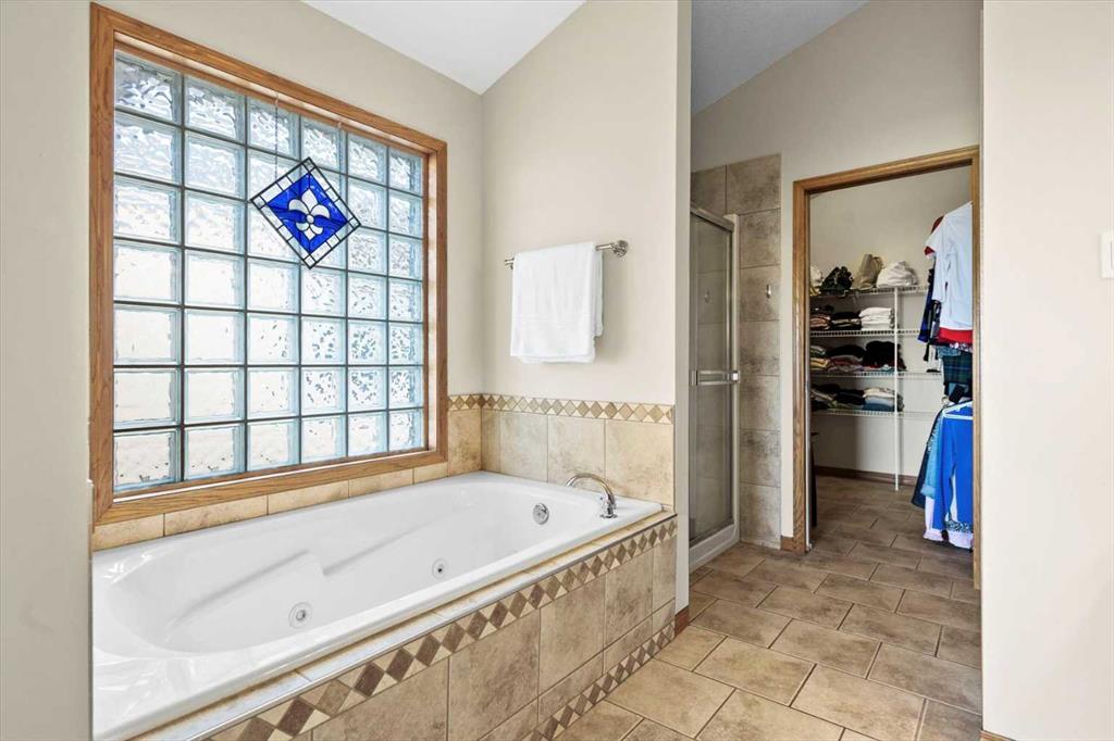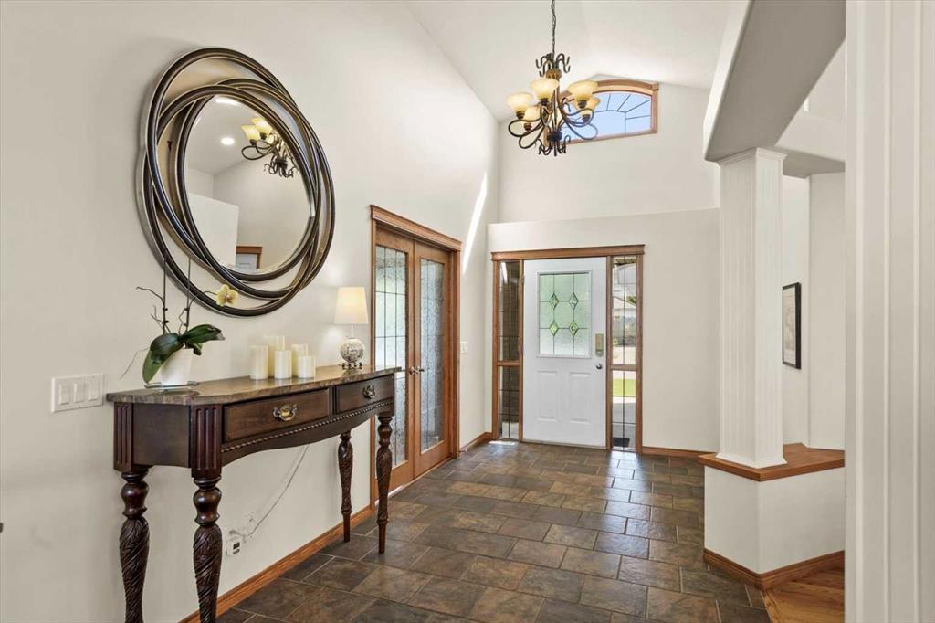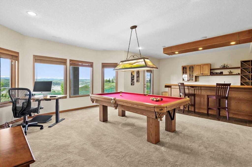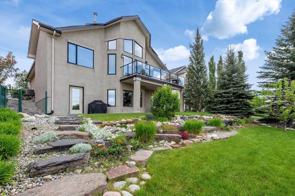 The master suite, conveniently located on the main floor, is a true sanctuary. It features a luxurious 5-piece ensuite bath and offers easy access to the main living areas. The walkout lower level is an entertainer’s dream, with in-floor heating and a media room complete with theater seating for an immersive viewing experience. A games room with a full bar and pool table is ideal for hosting friends, while the custom library offers a quiet spot for reading or relaxation. Two additional bedrooms are located on the lower level, along with a spacious 3-piece bath. The lower level also opens onto a patio, offering seamless access to the beautifully landscaped yard with a terraced garden and full irrigation system. For added comfort, the home is equipped with central air conditioning and surround sound throughout, ensuring the perfect atmosphere year-round. Whether you're enjoying a cozy evening by the fire, hosting a game night, or unwinding on the deck with a glass of wine, this home offers an exceptional lifestyle.