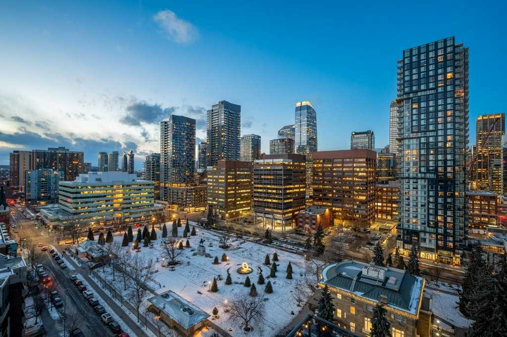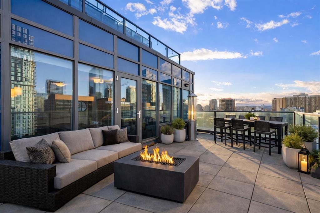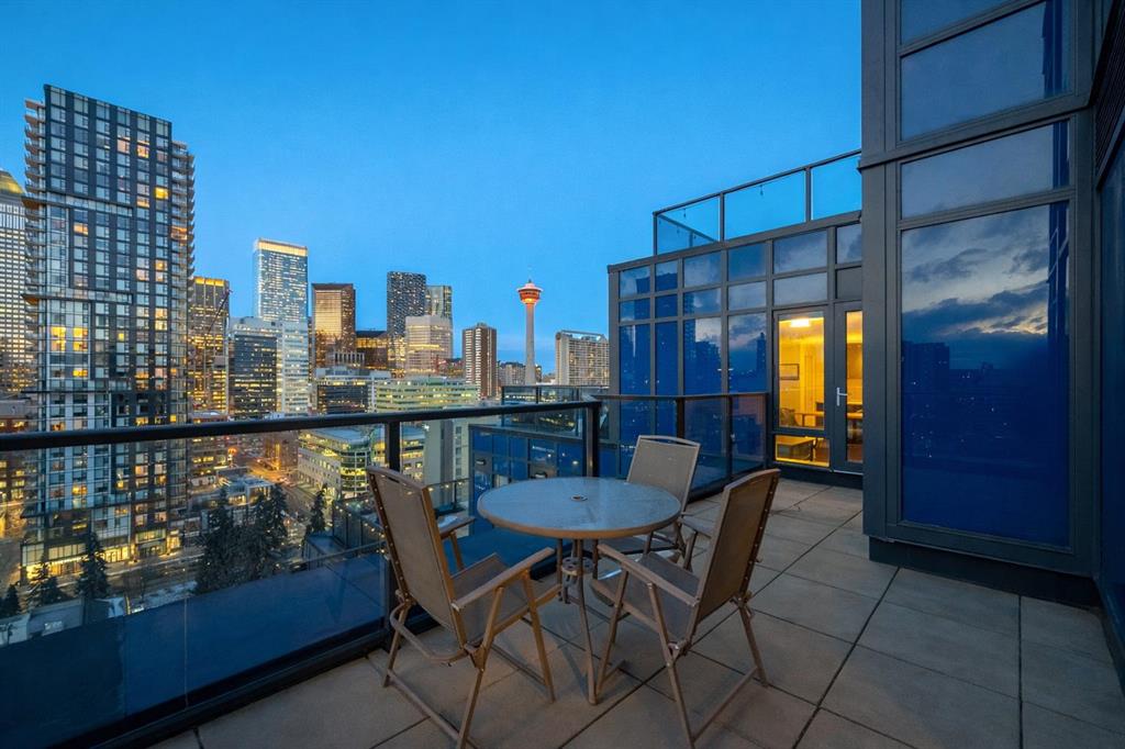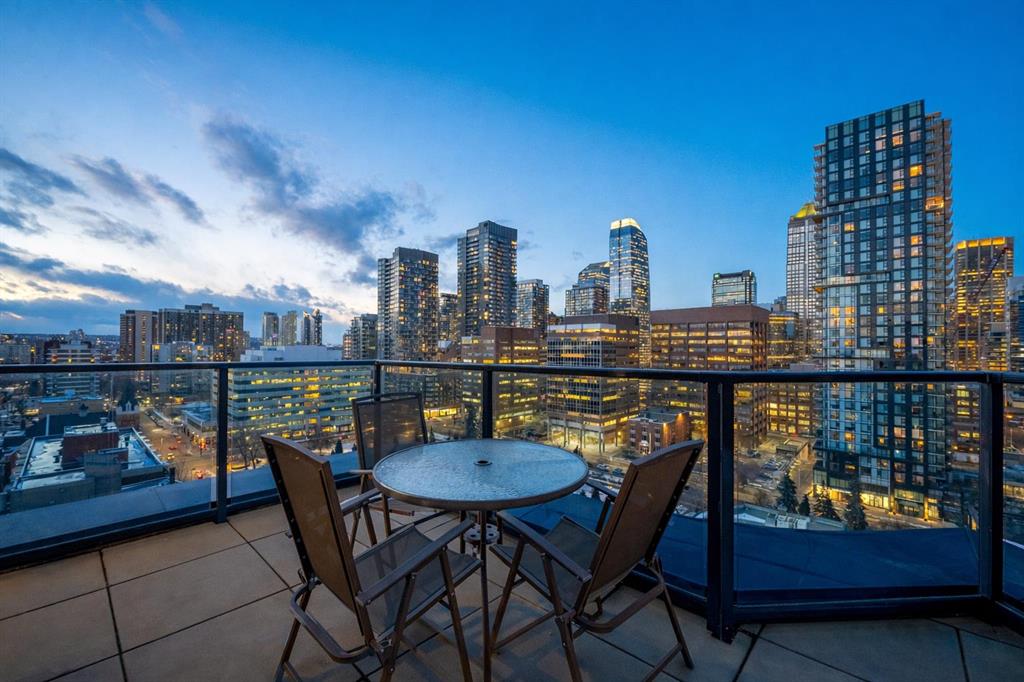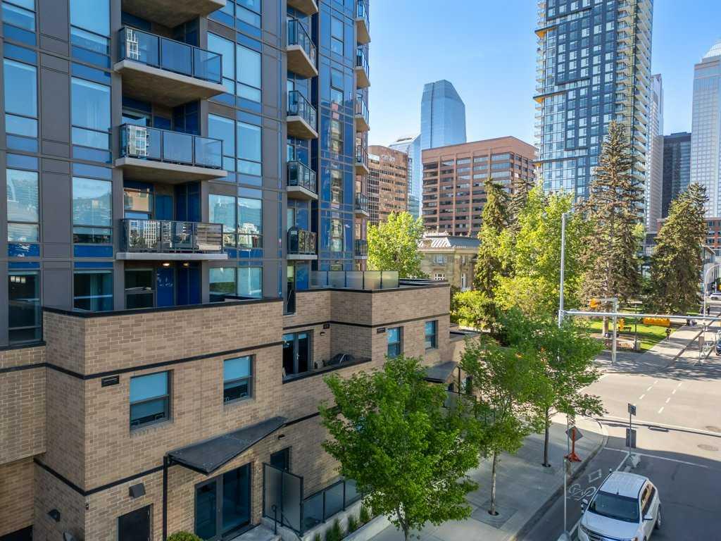 Your front-row seats to the Calgary skyline. A Penthouse feel - without the Penthouse price. Enjoy 2 bedrooms + 2 bathrooms + 2 terraces while overlooking 1 incredible view. From the moment you walk in, the energy is undeniable. Expansive windows flood the open-concept space with natural light while the city becomes your everyday backdrop. The kitchen delivers both style and function: granite counters, stainless steel appliances, gas range, rich espresso cabinetry, pantry storage and a central island designed for gathering. The living room? Equally suited for movie nights or simply watching the lights of downtown come alive - you may find the skyline steals the show. Once you step outside, everything changes. Nearly 500 sqft of outdoor space unfolds across two oversized terraces - a true rarity in urban living. One is perfectly positioned off the primary suite for quiet morning coffee. The other becomes your summer headquarters - entertaining under the glow of Calgary’s most iconic buildings with friends, laughter and evenings that stretch into the night. The best part about the view? Protected. With Central Memorial Park below, this isn’t just beautiful, it secures long-term value. Back inside, the generous primary retreat features a walk-in closet and spa-inspired 5-piece ensuite, while the second bedroom and adjacent full bath create ideal flexibility for guests or those who work from home. The lifestyle perks continue with an underground parking stall, two storage lockers, onsite concierge, fitness facility, guest suite, community garden + shared terrace, visitor parking with EV charging and loading dock convenience. All positioned in one of Calgary’s most walkable locations - steps to restaurants, cocktail bars, pubs, downtown offices, C-Train access, Stampede grounds and the future arena district. This isn't just a condo - it's a perspective upgrade. Live differently. Live above the city.