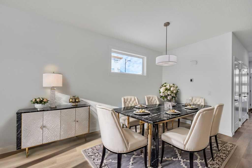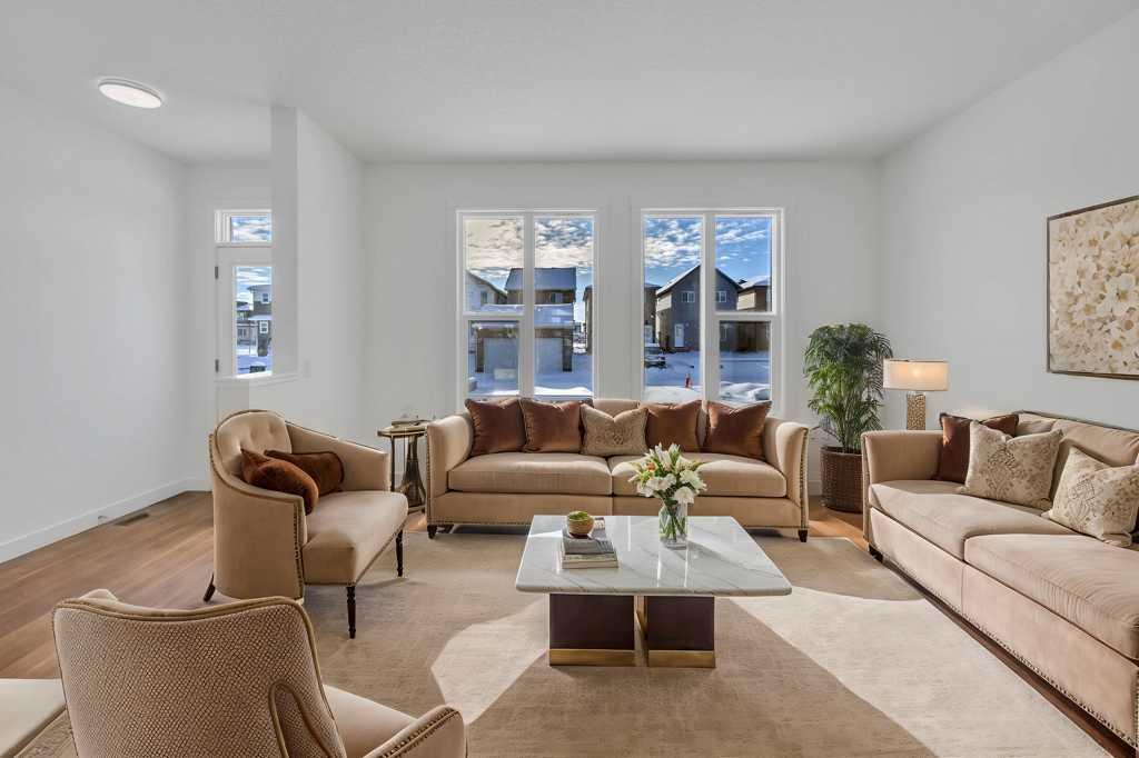 Welcome to this fully upgraded brand new single-family home located in the up-and-coming neighborhood of Chinook Gate in Airdrie. This is a fantastic opportunity to own a Brand new home without the wait! Built in 2024, this never-occupied home includes the Alberta New Home Warranty from the builder. With approximately 2632 sq ft of living space, this property features an ILLEGAL BASEMENT SUITE, a concrete parking pad, 4 bedrooms, 3.5 bathrooms, 2 living areas and a lot more to explore. The main floor boasts two spacious living areas, a generously sized kitchen with a pantry, and a dining area. Step inside to find a bright and inviting first living area with a large window. Sleek stainless steel appliances give the kitchen a stylish edge, while the open layout seamlessly connects to the family room, which is filled with natural light from large windows—perfect for entertaining or cozy family gatherings. Upstairs, you’ll find the primary bedroom, a bonus room, a laundry room, two bathrooms, and two additional well-sized bedrooms. The primary bedroom stands out with its luxurious ensuite bathroom, walk-in closet, and private balcony. The bonus room offers flexible space for an office, playroom, or extra living area, and the laundry room is conveniently located on this level. 2 other good size bedrooms which share a common bathroom completes the upper floor. The ILLEGAL BASEMENT SUITE includes a side entrance, a spacious bedroom, a bathroom, a kitchen, and a large living area with a huge window for natural light. The property also comes with a concrete garage pad ready for future garage development. Photos are taken before the tenants move in. Book your private showing today!