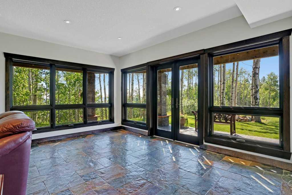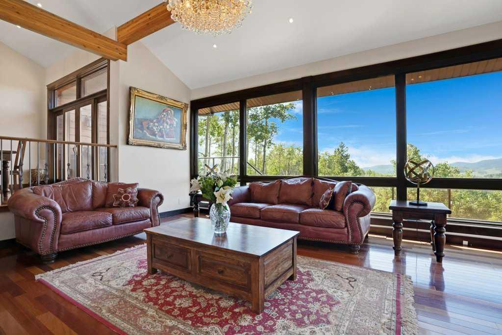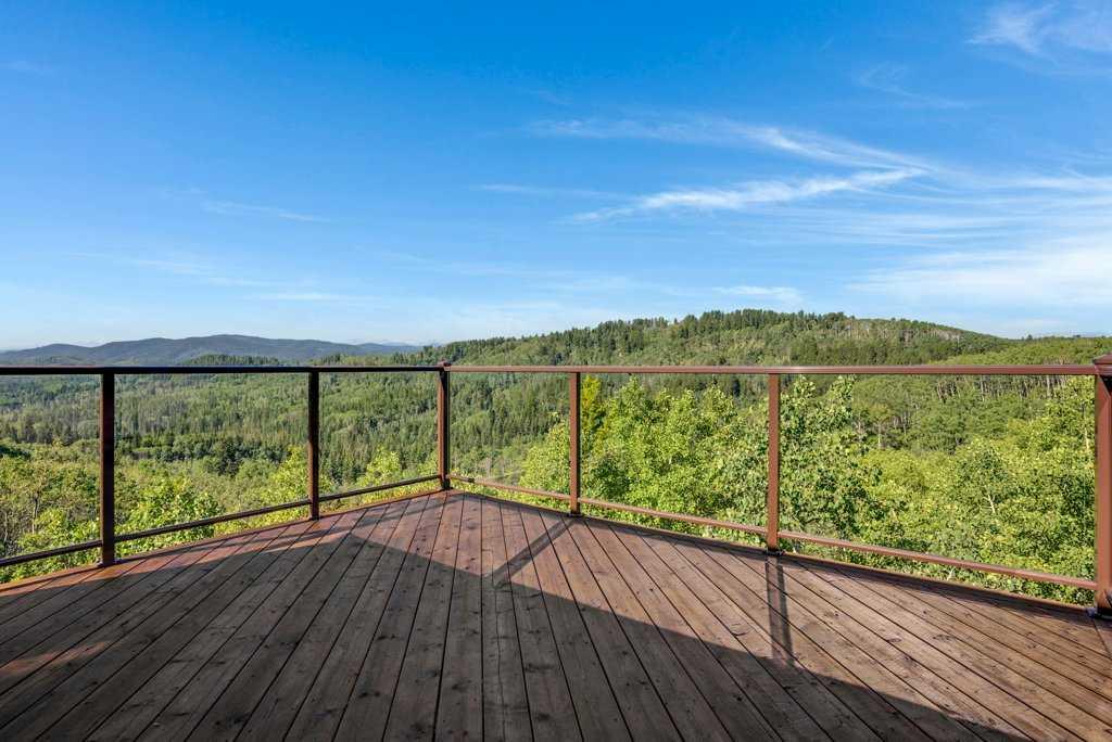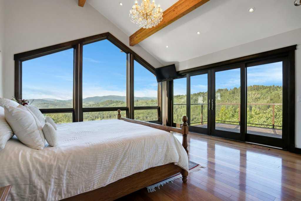 The Bragg Creek Trifecta: many properties have one of these three coveted things, but very few have it all! First, a beautiful home. Redesigned by award winning, internationally acclaimed designer, John Haddon, the 3968 sq. ft. of living space was taken down to the studs and rebuilt, inside and out, with the finest materials and craftsmanship. Second, incredible views of the mountains and forest. Given the seclusion and privacy, not a single curtain on any of the 55 windows impedes the breathtaking views afforded from every room. The third and most rare attribute of all, the thing that makes this “the hat trick”, is direct access to Kananaskis Country! That’s right, there is a private gate that connects to one of the most famous, beautiful, backcountry areas in Alberta, where you can hike or bike or ride for days. This home, sitting on 23 acres, is part of a small exclusive development of properties which span a ridge and directly border K-Country - the biggest backyard of all! Entering the home, the first thing you notice is the airy interior space, with cathedral ceilings and huge windows. The slate foyer gives way to Brazilian cherry hardwood floors, flowing throughout the balance of the home. Resisting the urge to immediately rush to the windows and deck system, to the left is the dining room and kitchen with quartz countertops and high-end appliances. Further on are two high-ceiling bedrooms, each with their own access to the wrap-around deck and connected by a large Jack and Jill 5-piece en suite. The upstairs is entirely devoted to the primary suite, which is unparalleled, with the huge windows and private deck all giving a new perspective to the vistas beyond. The 6-piece bathroom and walk-in closet complete this lofty sanctuary. The walk out lower level features a bar, exercise room, office area, expansive rec room with gas fireplace, 3-piece bath, and French doors to the walk-out patio and huge deck beyond. The property is completed by an insulated and drywalled triple car garage. You’re intrigued, I can tell, and further investigation is needed. Explore using our streaming video and 3-D tour; and then take the next step and make the Trifecta your own.