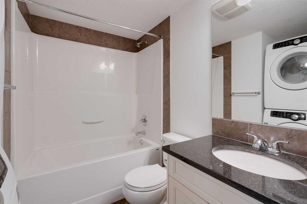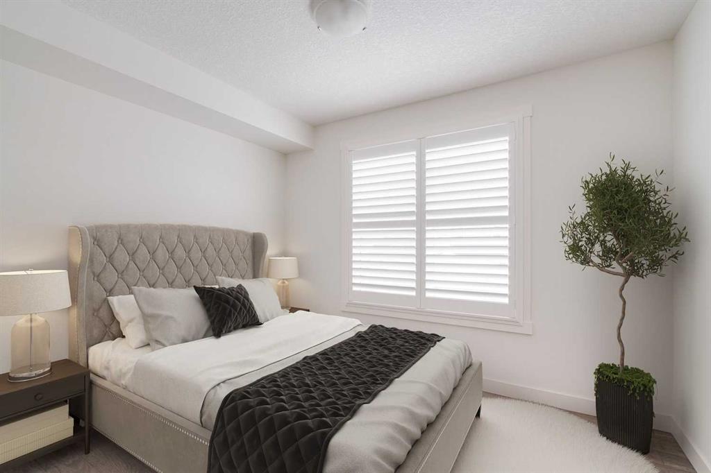 A beautifully maintained bungalow-style end-unit townhouse in the heart of Cranston, offering an exceptional blend of comfort, style, and functionality. This thoughtfully designed 2-bedroom, 1-bathroom home showcases pride of ownership throughout, a private double attached tandem garage, and is truly move-in ready. Located in one of the development's best locations, this end-unit townhouse receives more natural light and has no neighbours directly in front, ensuring you can maximize sunshine on your private south-facing patio! Resilient laminate flooring extends throughout the main living space and into the bedrooms, creating a warm and cohesive aesthetic. The open-concept layout is anchored by a timeless central kitchen featuring full-height white cabinetry, accented by black pearl granite countertops, and a suite of upgraded stainless steel appliances. Clean lines and neutral finishes create a space that feels both current and timeless. Expansive south-facing windows flood the living area with natural light year-round, enhancing the bright and inviting atmosphere. The primary bedroom includes a walk-in closet, while the second bedroom offers versatility - ideal as a guest room, home office, or additional bedroom. The full bathroom features matching cabinetry and includes a convenient stacked washer and dryer. On the lower level, you’ll find additional storage space and access to the private double attached tandem garage, offering flexibility for two vehicles, additional storage, or the option to incorporate a hobby space or home gym. Enjoy the outdoors from the south-facing private front patio, which is fully fenced, includes a gas BBQ line, and perfectly captures the afternoon and evening sun while overlooking a beautifully landscaped walkway. Ideally situated just minutes from Cranston Market, schools, pathways, and with quick access to Seton’s extensive amenities and the South Health Campus, this location offers both convenience and community. Low condominium fees within this well-managed complex provide a maintenance-free lifestyle at an attractive cost. An ideal opportunity for first-time buyers, downsizers, or investors seeking quality and long-term value in one of Calgary’s most established southeast communities.