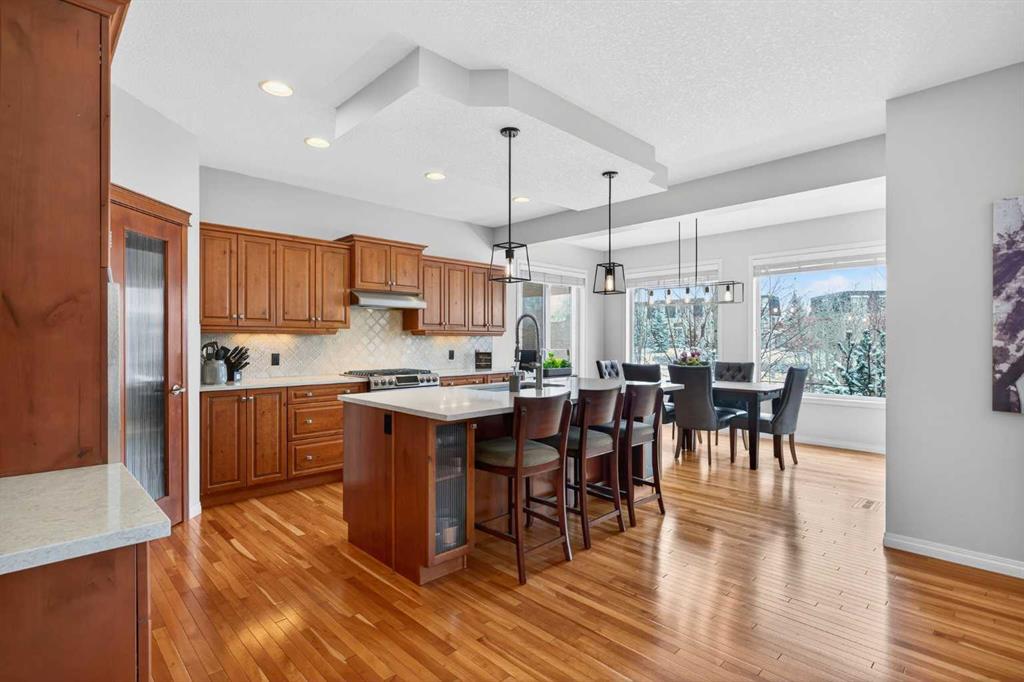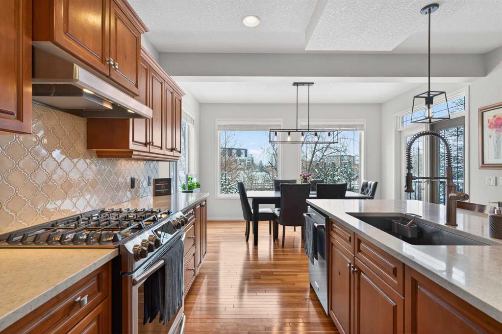 A rare opportunity to secure an executive walkout in one of Calgary’s most sought-after west communities, where privacy, convenience, and lifestyle align beautifully. (Additional updates: New Fridge and dishwasher; Kitchen counter, backsplash, stove and microwave - 5 years; HWT - two years; Central air -four years; light fixtures replaced throughout; updated upstairs laundry)