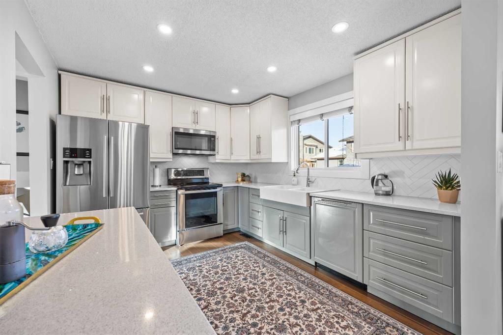 Homes like this don’t come up often — a fully developed 4-bedroom family home in sought-after Woodhaven offering space to grow, thoughtful updates, and multiple living areas designed for real life. With over 2,300 sq.ft. of developed living space, this well-maintained 4-level split offers both functionality and comfort in one of Okotoks’ most beautiful neighbourhoods, just a short walk to the scenic pathways along the Sheep River, as well as nearby schools, parks, and everyday amenities. The bright main level features a sunken living room with large west-facing windows and a cozy gas fireplace, while the updated kitchen showcases stone countertops, upgraded cabinetry, stainless steel appliances, and a spacious dining area that opens onto the rear deck — perfect for entertaining or relaxed family evenings. Upstairs you’ll find three bedrooms including the primary suite with 3-piece ensuite and double closets, along with a full main bathroom. The lower level adds excellent flexibility with a large family room featuring a wood-burning fireplace, a fourth bedroom, full bathroom, laundry area, and direct access to the garage and backyard. The fully developed basement offers an ideal media or recreation space complete with home theatre setup, flex room, and additional storage. Major mechanical and exterior updates provide peace of mind, including new roof, eaves, fascia and downspouts (2025), new hot water tank (2025), furnace (2020), six new windows (2017), newer water softener, and a new fence in 2023. Central air conditioning adds comfort during the summer months. Outside, the private fenced yard and mature trees create a welcoming outdoor space, complemented by excellent curb appeal and a double attached garage. This is a rare opportunity to move into a mature, established neighbourhood where families stay for years. Check out the video tour here: https://rem.ax/4rLFfZB