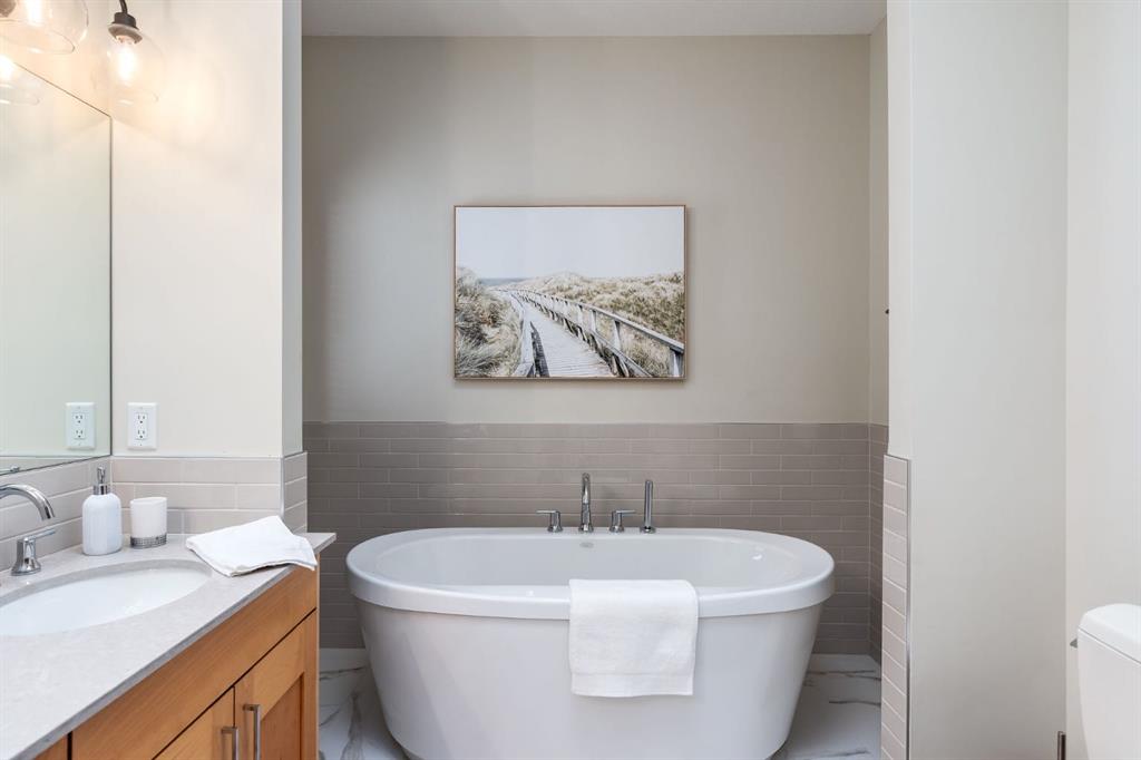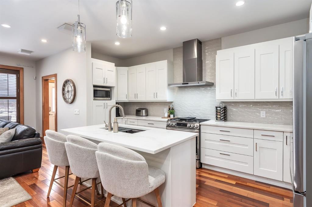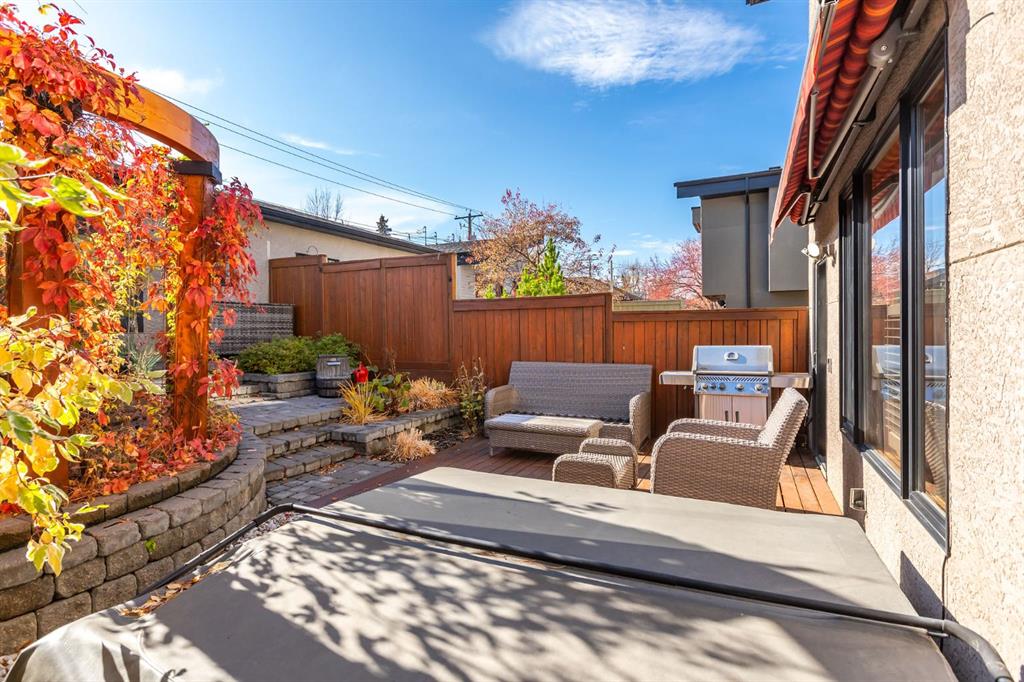 Discover a home that effortlessly balances modern sophistication with warmth & livability.This beautifully updated infill offers a refined living space, where clean architectural lines meet rich textures & thoughtful design.With 9’ ceilings, freshly painted interiors & timeless finishes throughout, the home feels both elevated & inviting from the moment you arrive.Step inside to immaculate hardwood floors bathed in natural light pouring through expansive south-facing windows.The open-concept main floor is anchored by a welcoming living space, where a gas fireplace sets the tone for cozy evenings &effortless entertaining.At the heart of the home, the fully renovated kitchen is a true showpiece—featuring quartz countertops, an expansive island with pendant lighting, a large double sink, brand-new stainless steel appliances including a deluxe gas range, & crisp cabinetry that adds warmth and depth.It’s a space designed for gathering—from busy weekday mornings to relaxed weekend dinners with friends.Upstairs, two bright secondary bedrooms & a conveniently located laundry room offer everyday functionality, while the vaulted primary retreat feels like a private sanctuary.Step onto your personal balcony for a breath of fresh air & take in the vibrant city views before retreating to the updated spa-inspired ensuite, complete with quartz countertops, dual sinks, a deep soaker tub, oversized glass shower, & a custom California Closet.Thoughtfully designed & beautifully finished, this level blends comfort and quiet luxury.The basement remains untouched—a blank canvas awaiting your personal vision. With roughed-in in-floor slab heating already in place, 10’ ceilings, the groundwork has been thoughtfully considered.Whether you envision a media room, home gym, guest suite, office, or additional family space, this lower level offers the opportunity to tailor the home to your exact lifestyle and add meaningful long-term value.Outdoors, enjoy a private property, with south-facing backyard complete with underground sprinklers, exposed aggregate walkway leading up to the home, a gorgeous custom patio,& a hot tub perfect for summer evenings under the stars.The fully painted epoxy garage, accessed via a paved back alley, is ideal for car enthusiasts or anyone who appreciates a polished workspace.Additional upgrades include new 50-year asphalt shingles, air conditioning, surround sound speakers and sound system,& exterior enhancements that elevate both function and curb appeal.& perhaps one of the most coveted features of all—location. Just six blocks from the vibrant energy of 33rd Avenue, you’re moments from some of Calgary’s best cafés, boutiques, fitness studios, and local restaurants, while still enjoying the charm and quiet of a mature residential street.With nearby schools, parks, South Calgary's out door pool, beach volleyball quartz, Sandy Beach, North Glenmore Reservoir, golf courses, the best dog park in the city & a downtown commute of 10 mins! Welcome Home!