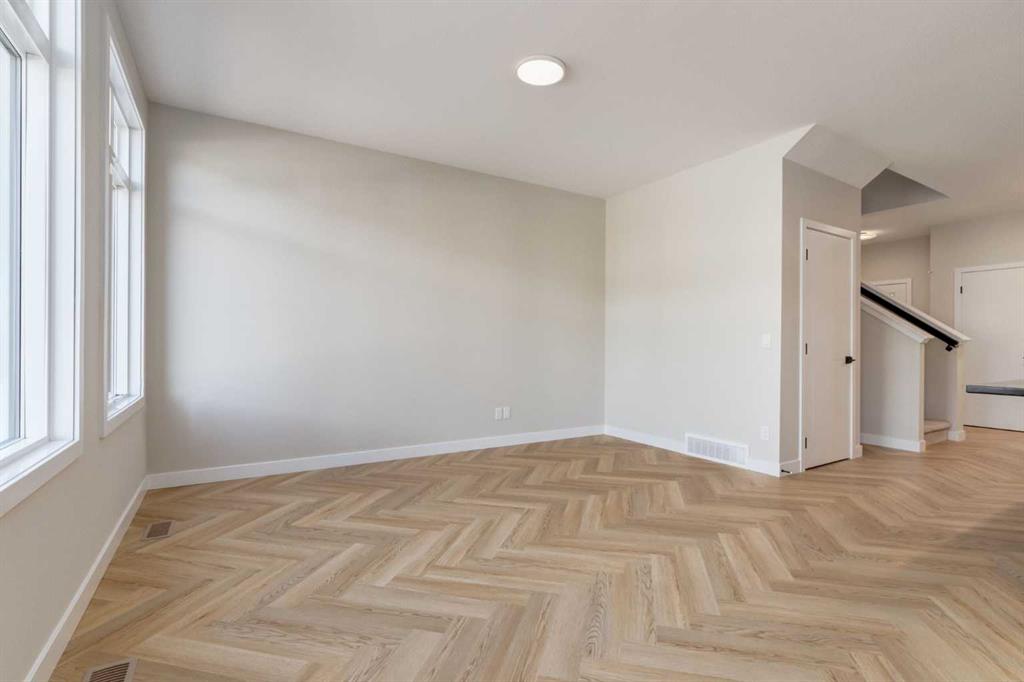Introducing the Easton by Rohit Homes, a 1,661 square foot front attached garage home in the southeast Calgary community of Heartwood. Featuring three bedrooms, a central bonus room, upper level laundry, and a separate side entrance for future basement development, this new construction home in SE Calgary blends architectural presence with everyday functionality. The main level offers 9 foot ceilings and a bright, thoughtfully designed layout that balances comfort and flow. At the center of the home is an oversized kitchen island that anchors the space and creates a natural gathering point for family and guests. A walk-in pantry provides exceptional storage, and the full appliance package, including washer and dryer, ensures true move-in readiness. Expansive rear windows bring in natural light, enhancing the open living and dining areas. A generous front foyer supports everyday organization, while the double attached garage offers space for two vehicles plus additional storage. Finished in Rohit’s Haute Contemporary interior palette, the home embraces clean architectural lines, elevated hardware selections, statement lighting, and modern detailing that create a sleek, designer-inspired aesthetic. This curated palette delivers a refined contemporary feel with strong visual balance and intentional design throughout. Upstairs, the centrally located bonus room provides flexible living space ideal for a media lounge, home office, or secondary family room. The primary suite includes a spacious walk-in closet and a well-appointed ensuite featuring a soaker tub and separate shower. Two additional well-sized bedrooms and a dedicated upper laundry room complete a layout designed for both privacy and practicality. The separate side entrance enhances long term flexibility, offering excellent potential for future basement development or expanded living space. Located in Heartwood SE Calgary, residents enjoy convenient access to Seton, South Health Campus, the YMCA, shopping, dining, schools, and major roadways. As one of Calgary’s emerging southeast communities, Heartwood combines the benefits of new development with proximity to established amenities. Backed by Alberta New Home Warranty coverage, the Easton offers modern design, smart planning, and lasting value in southeast Calgary.