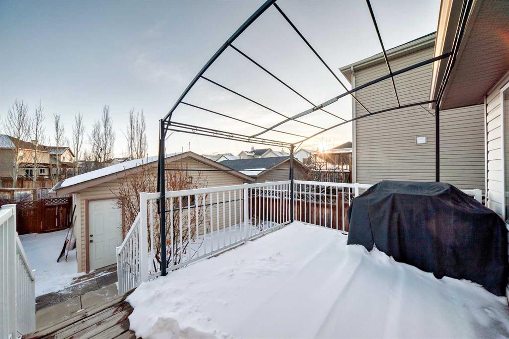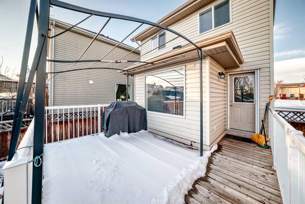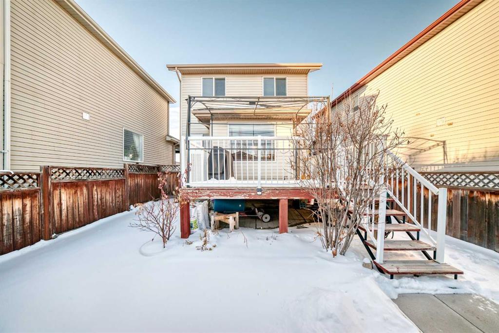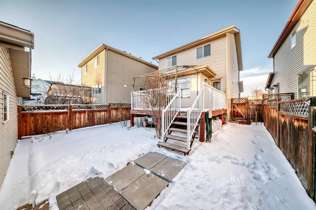 Well-maintained single detached home in the sought-after Evergreen community. The main floor features a bright, spacious living room that flows into a functional kitchen with black appliances, a generous dining area overlooking the backyard and double detached garage, and a convenient half bath. The sunny backyard has a great-sized deck for outdoor entertainment and space for gardening. Upper floor has two sizeable bedrooms, a full bath and a Master Bedroom with 3-piece ensuite bath and a generously sized closet. Hardwood and laminate flooring run throughout the home. Basement has a laundry area and offers additional flex space for storage or future development. A newer hot water tank has been installed as well. Located directly across from Catholic School of Our Lady of Evergreen, with bus stops just around the corner and two additional schools only minutes away. Close to playgrounds, recreational center and Fish Creek Provincial Park with quick access to Stoney Trail for easy commuting to shopping, Costco, and all areas of the city.