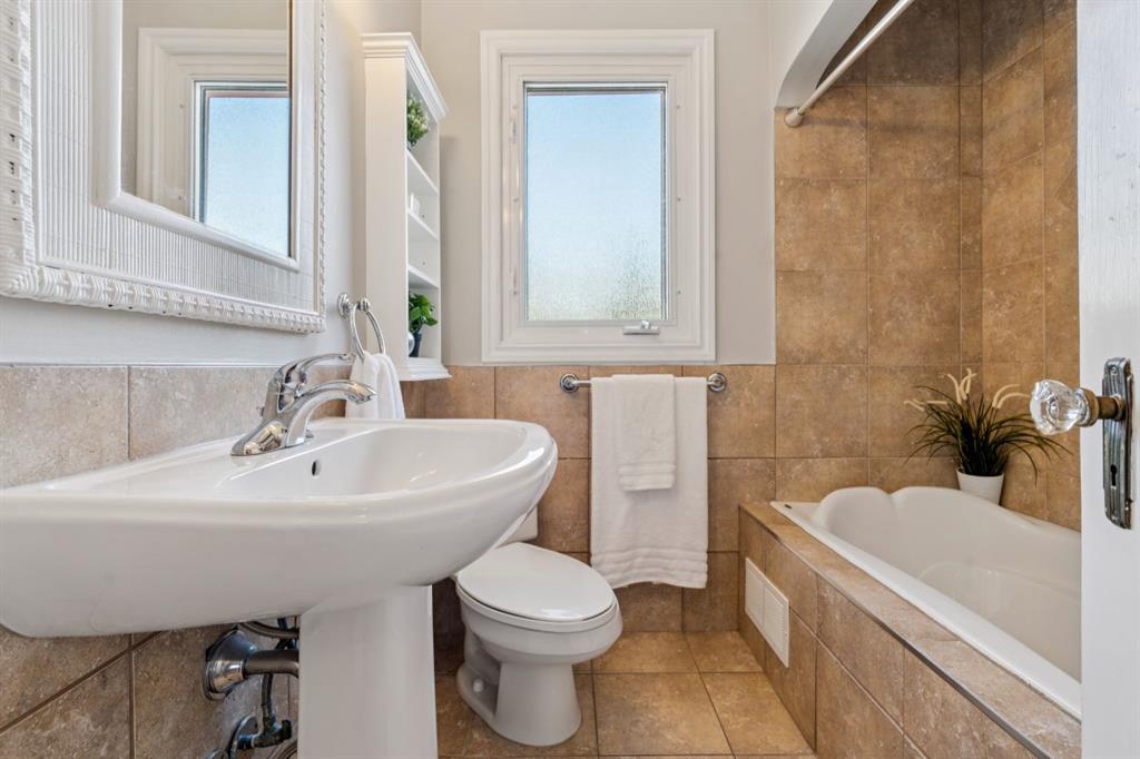 Nestled on a tree-lined street in the vibrant inner-city community of Rosedale, this charming bungalow offers the warmth of a well-loved and well-maintained family home paired with thoughtful updates for modern living. This home offers over 2400 square feet of living space on a generous 50 X 120 lot. From the moment you step inside, you’ll appreciate the timeless details that give this home its soul: original hardwood floors, graceful arched doorways, curved crown mouldings, crystal door knobs and soaring 9-foot ceilings. The bright living room is anchored by a large picture window and a cozy gas fireplace — the perfect spot to curl up and read a book on a Sunday afternoon. The formal dining room is ideal for entertaining and hosting holiday meals and dinners with friends. Designed with family living in mind, the expanded kitchen is truly the heart of the home. Bathed in natural light from the east and south, it offers generous prep & storage space, a breakfast nook, and stainless steel appliances. Whether enjoying your morning coffee or sharing the events of the day over an after school snack at the kitchen table, this is a space that brings everyone together. The main floor features three bedrooms — ideal for a young family — with one currently serving as a sunny home office overlooking the backyard. Downstairs, the fully renovated basement creates an inviting retreat for movie nights and family time, complete with a cozy gas fireplace, custom built-in shelving, and a beautifully updated bathroom with heated floors and a glass shower. The additional 4th bedroom is perfect for guests and the large laundry room with sink and storage space offer a ton of convenience and functionality. Central air conditioning ensures year-round comfort, while a newer hot water tank (1 year) and roof (5 years) offer peace of mind. Step outside and discover a private backyard oasis. Mature trees, a perennial garden, a custom cedar fence, and thoughtful landscaping create a wonderful setting for summer barbecues, outdoor games, and evenings around the fire pit all year long. An exceptional location, steps away from Rosedale School, parks, walking paths on Crescent Ridge and the shops and cafes of Kensington, plus minutes to downtown SAIT and Foothills hospital. This is more than just a house — it’s a place to grow, gather, and create lasting memories. Welcome Home!