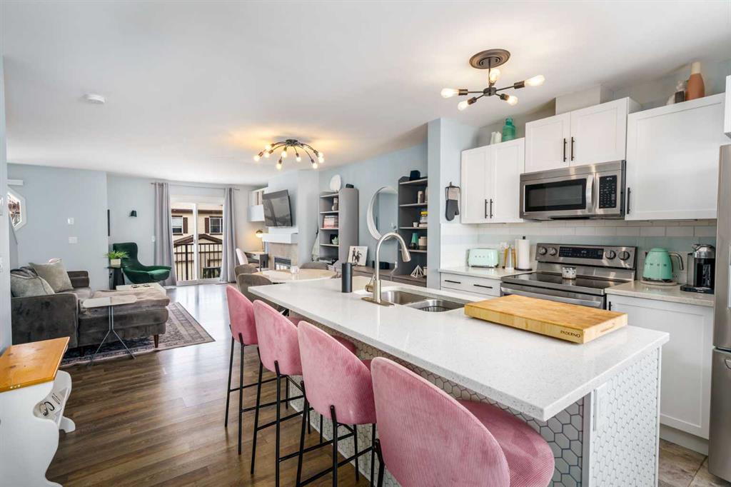 Welcome to Aura in Copperfield, a beautifully finished 3-storey townhome that pairs an elevated interior with a premium backdrop of open green space and wetlands behind. From the moment you arrive, the layout just works for real life. The entry level offers a single attached garage and a bright flex/office space that’s perfect for a home workspace, Peloton room, play area, or a cozy TV den, plus it walks out to a lower patio, making summer evenings and weekend lounging feel effortless. Upstairs, the main floor is where everyone naturally gathers, finished with laminate flooring throughout and an airy, light-filled feel. The rear kitchen is crisp and contemporary with white cabinetry, quartz countertops, and a generous island wrapped in a standout hexagon tile detail, the kind of finish that instantly feels more custom. Add tile flooring, newer stainless appliances, and thoughtful storage (including two closets by the kitchen that easily function as a pantry and broom/utility closet), and you’ve got a space that’s as practical as it is stylish. The dining area sits right in the center of the floor plan—anchored by a modern light fixture, making it ideal for everything from casual weeknight dinners to hosting friends, and yes, it sets up perfectly for those holiday meals where everyone ends up lingering at the table. At the front of the home, the living room is impressively sized and inviting, featuring a central fireplace with a tile surround and access to a second deck, great for catching the sun, sipping coffee, or creating a little outdoor lounge zone separate from the kitchen deck. On the top floor you’ll find three bedrooms, including a spacious primary retreat with a walk-in closet and 4-piece ensuite, plus two additional bedrooms at the back with large windows and another 4-piece bath conveniently placed just outside their doors. Set within a well-established southeast Calgary community known for its parks, ponds, and interconnected pathways, Copperfield offers a lifestyle that’s easy to love—whether it’s evening walks, bike rides, playground time, or meeting neighbours at local green spaces. Residents also enjoy access to the Copperfield Community Association amenities and programming, including community gathering spaces and seasonal features like outdoor recreation. And when it’s time to get around the city, you’re well-positioned with convenient access to major routes like Stoney Trail and Deerfoot Trail, plus everyday shopping and services nearby.