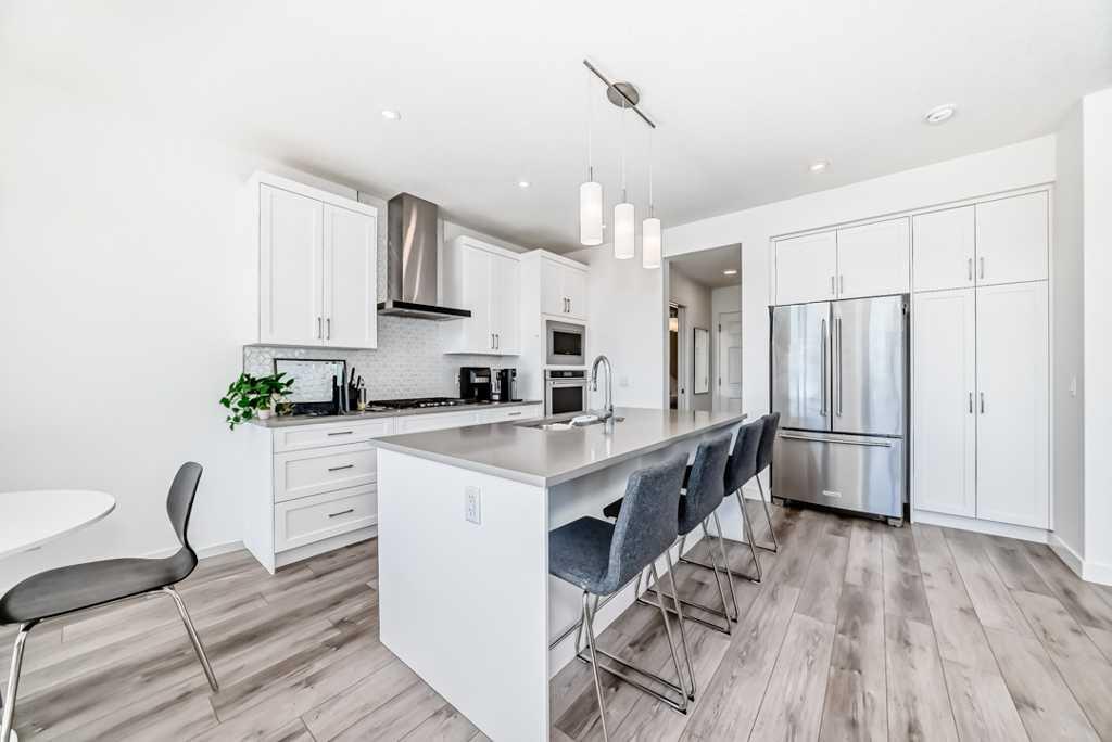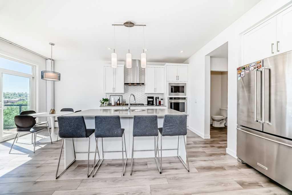 OPEN HOUSE SATURDAY, March 7, 2-3pm Welcome to Green Space View — a stunning 4-bedroom, 3.5-bath home with a walkout basement in the prestigious Aspen Springs community of Springbank Hill. Built in 2022 and still covered by the New Home Warranty, this thoughtfully designed residence offers nearly 2,000 sq. ft. of total living space and backs directly onto serene green space. Enjoy an east-facing backyard that bathes in the morning sun, creating the perfect setting for coffee on the deck and peaceful starts to your day. The main floor boasts 9 ft ceilings, an elegant white interior palette, luxury vinyl plank flooring, and an open-concept layout ideal for both daily living and entertaining. The gourmet kitchen features crisp white cabinetry, quartz countertops, tiled backsplash, high-end stainless steel appliances including gas cooktop, built-in oven and microwave, extra-wide refrigerator, and a large central island. The bright dining area opens to the upper deck through patio doors, while the spacious living room offers plenty of natural light. A mudroom and 2 pc powder room complete the main level. Upstairs, you’ll find three generously sized bedrooms, a 4-piece main bath, and a convenient laundry room. The serene primary suite is a true retreat, featuring a luxurious 5 pc ensuite with dual sinks, a soaker tub, separate glass shower, and a large walk-in closet. The fully finished walkout basement adds incredible versatility, with a large family/recreation room, a fourth bedroom, and a 3 pc bath, perfect for guests, as a home office or the teenager that wants their privacy. Step outside to your private covered patio and enjoy direct access to the walking path and green space beyond. Attached front drive double garage.. Enjoy the convenience of walking to Aspen Landing Shopping Centre, top tier schools including Rundle College, Webber Academy, and Ambrose University - all within 2.5 km! Dining options just steps away within the complex. Easy access to Westside Rec Centre, multiple golf courses, and nearby country clubs enhances your active lifestyle. Elegant, modern, and move-in ready, this exceptional townhome truly offers the best of low-maintenance luxury living with nature at your back door and amenities just minutes away.