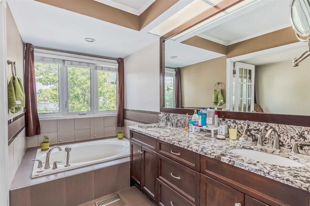 Opportunities like this rarely come to the market in Sunnyside. With city views, a double attached garage, 3 beds and 3.5 baths this home combines space, views, and location in one compelling package! Set across from green space, this end-unit townhouse offers the perfect balance of privacy, natural light, and unbeatable inner-city access. Just steps to the Bow River pathways and minutes to Kensington, the LRT, and downtown, the lifestyle here is as impressive as the home itself. Inside, the open-concept main floor is designed for both comfort and entertaining. Hardwood floors highlight the spacious living room, where a gas fireplace creates a warm focal point. Large sliding glass doors open onto a private covered deck, ideal for morning coffee or evening unwinding. The kitchen delivers both function and style with extended cabinetry, granite countertops and stainless-steel appliances. A bright west-facing bay window fills the dining area with natural light, creating an inviting space for everyday meals or hosting friends. Upstairs, the primary retreat feels elevated in every sense, complete with its own corner fireplace, walk-in closet and French doors leading to a well appointed five-piece ensuite featuring dual vanities, a soaker tub, and separate glass shower. The upper level has been thoughtfully updated to improve usability with an additional bedroom and bathroom added to the space. The fully finished basement expands the living space even further with an additional bedroom, a three-piece bathroom, and laundry. Perfect for guests, a roommate, or growing families. Enjoy the best of inner-city living with river pathways, Kensington, and downtown all just moments from your door.