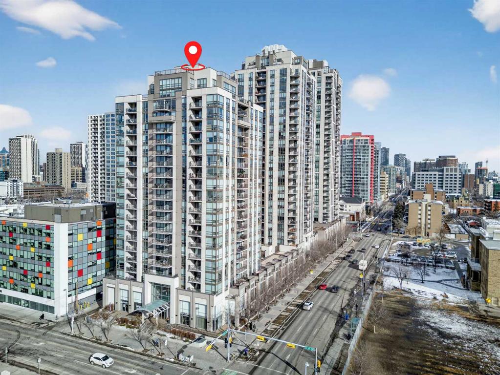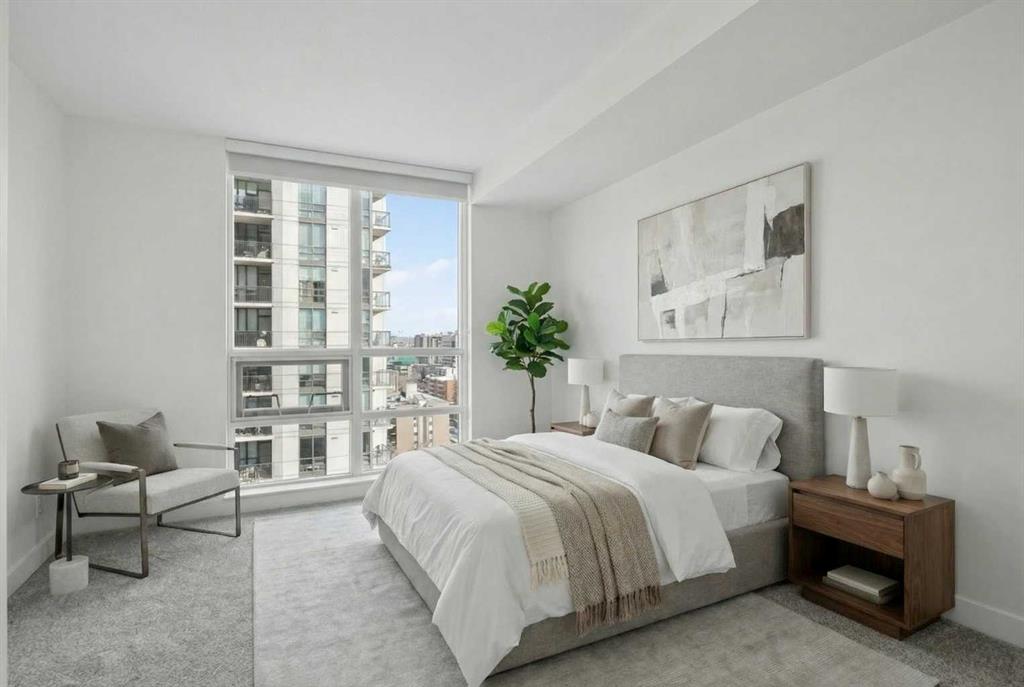 Experience elevated inner-city living in Stella, one of the Beltline’s most sought-after addresses. Perfectly positioned in the heart of the action, this beautifully refreshed suite offers a seamless blend of modern style and everyday comfort. Inside, you’ll find a bright, contemporary design highlighted by glossy white cabinetry, granite countertops, brand-new stainless steel appliances (including a new fridge, stove, and dishwasher), and upgraded laminate flooring that flows throughout the space. Freshly painted and completely move-in ready, the home also features central air conditioning and convenient in-suite laundry. Wake up each morning to beautiful south-facing city views from the bedroom. Stella offers an impressive array of amenities designed to complement your lifestyle. Enjoy a fully equipped fitness centre with cardio equipment, universal machines, free weights, change rooms, and a relaxing steam room. A spacious party and meeting room provides the perfect setting for entertaining, while a full-time concierge and security offer everyday peace of mind. The unit includes titled underground parking and an assigned storage locker for added convenience. Located just steps from the restaurants, cafés, and nightlife of 17th Avenue SW, a short walk to downtown, and only a few blocks from the Downtown West–Kerby C-Train station, the location is unbeatable. Three major grocery stores are within a three-block radius, and the scenic river pathways are close by for walking, running, or cycling. An exceptional opportunity for professionals seeking vibrant urban living or investors looking for a prime rental property in one of Calgary’s most desirable communities.