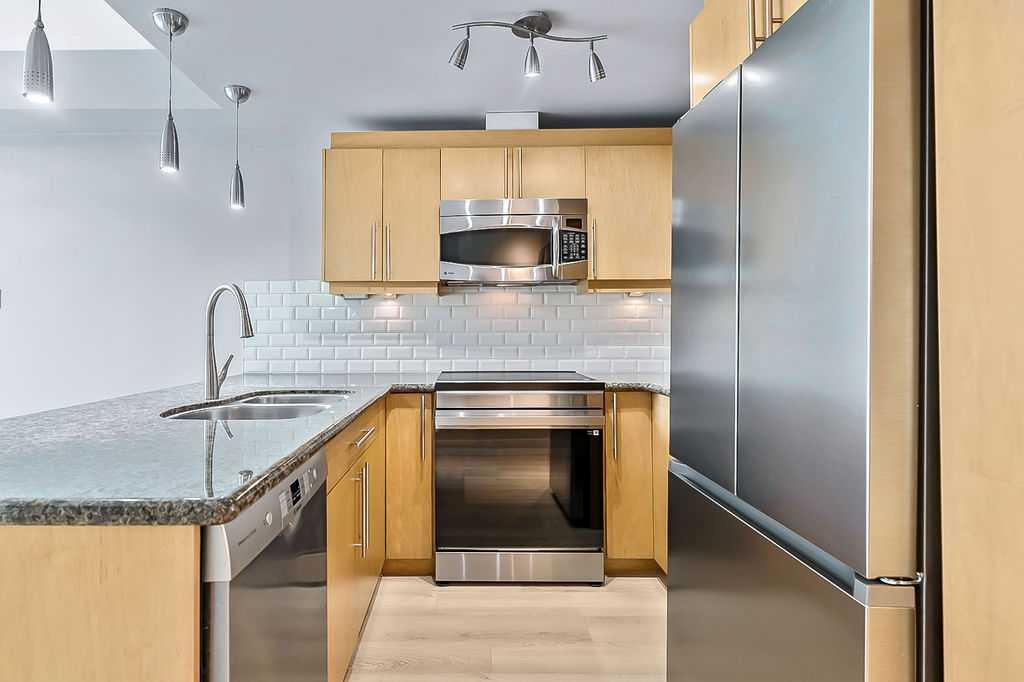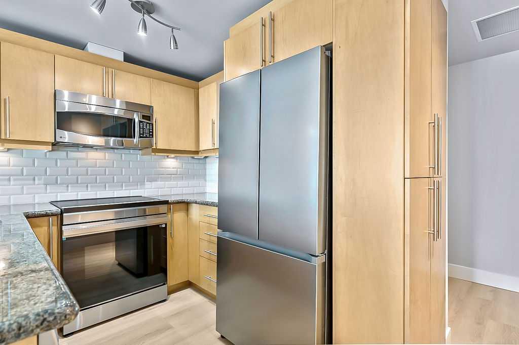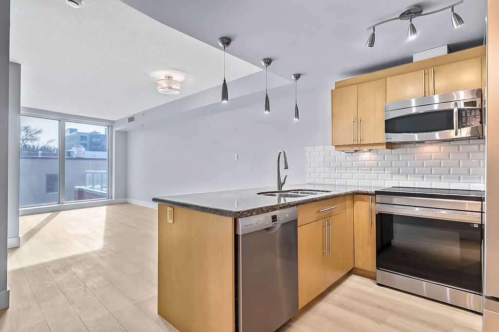 Like new renovated south facing 1 bdrm + den in the Montana, a prestigious Beltline landmark on a beautiful tree lined street steps to Mount Royal Village and vibrant 17th Ave. Ready to move right in, this open concept unit showcases EXTENSIVE MODERN UPDATES and thoughtful finishes throughout. Recent improvements include 2025 - luxury vinyl plank flooring, new baseboards, washer, dryer, induction range, fridge and fresh paint that create a clean, contemporary aesthetic. 2023 – Bosch dishwasher, kitchen backsplash, bathroom vanity, sink, and sink fixtures. The modern kitchen is open to the spacious living room and patio door to the balcony with a professionally installed screen door (2026) for added comfort and airflow. The titled underground PARKING STALL IS EXTRA WIDE AND HAS AN EV CHARGER. Residents of this iconic building enjoy premium amenities including a newly renovated fitness centre, 20 guest parking stalls and heated underground parking. The property is perfectly situated within walking distance of vibrant restaurants, cafés, boutique shopping and nightlife - offering an ideal balance of urban energy and comfortable living.