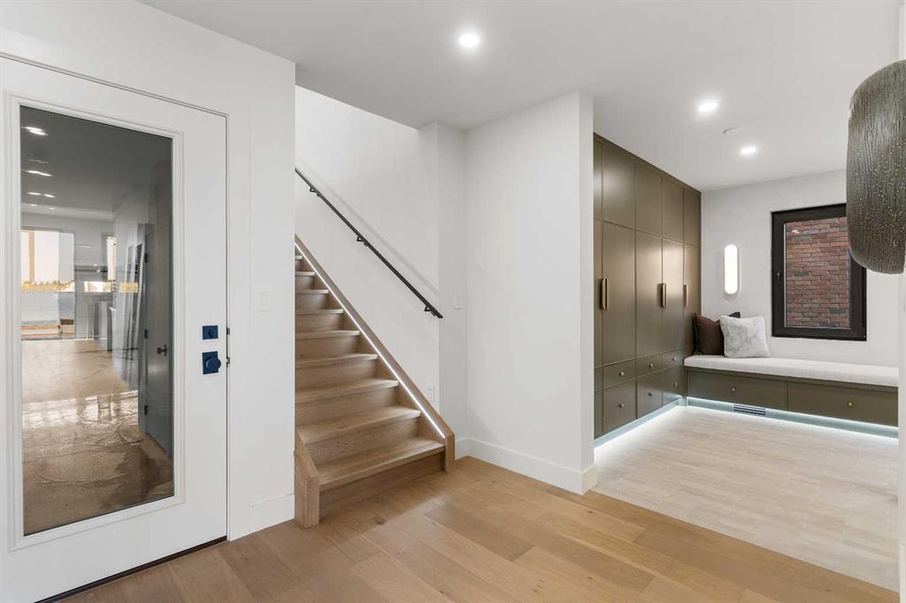 *Welcome to Lakeside Luxury on Chestermere Lake* With 4,482 sq. ft. of fully reimagined living space, this lakefront estate blends architectural sophistication with modern comfort on one of Chestermere Lake’s most exclusive stretches of shoreline. This complete renovation and design is an intricate remodel + extension, showcasing soaring 10’ ceilings, bespoke finishes, and walls of glass that capture sweeping water views. The foyer, framed by a 4 ft. Lux custom glass door, makes a bold first impression with a glass~encased home office and a see~through fireplace leading into the stunning living room. Floor~to~ceiling windows and European sliding doors create seamless flow to the outdoors, where a massive backyard, fire pit, and private dock invite year~round entertaining. At the heart of the home, the chef’s kitchen is a masterpiece ~ anchored by a Taj Mahal natural quartzite island, complemented by JennAir appliances, a butler’s pantry, and a limewashed plaster custom hood fan that compliments the natural stone backsplash. Brizo plumbing fixtures in champagne bronze + matte black, Lo & Co + Emtek hardware; and custom~designed lighting elevate every detail, while white oak cabinets and hardwood floors add warmth and texture throughout the home. A spacious mudroom that rivals the aesthetic of any competing luxury home, leads to the 4~car garage with a tucked~away workshop. The garage floor was transformed with a stunning, heated, metallic epoxy finish, providing both beauty and durability. LED sensors throughout the home create an unrivalled nighttime ambiance, and an exposed epoxy rear deck extends the entertaining space. Upstairs, a vaulted bonus room with the home’s original fireplace nods to its heritage, while a dual~desk workstation in the hallway adds functional elegance. Two secondary bedrooms and two larger master waterfront retreats capture lakeside serenity perfectly. The primary suite is pure indulgence, featuring a spa inspired ensuite with a steam shower, heated bench and floors, which flows seamlessly to a massive walk in closet with micro~shaker drawers and velvet encasements. Even the laundry room makes a statement, with classic black and white checkered flooring adding a charming and whimsical touch to this architectural marvel. This is more than a home ~ it’s a statement in design, craftsmanship, and lakefront living.
