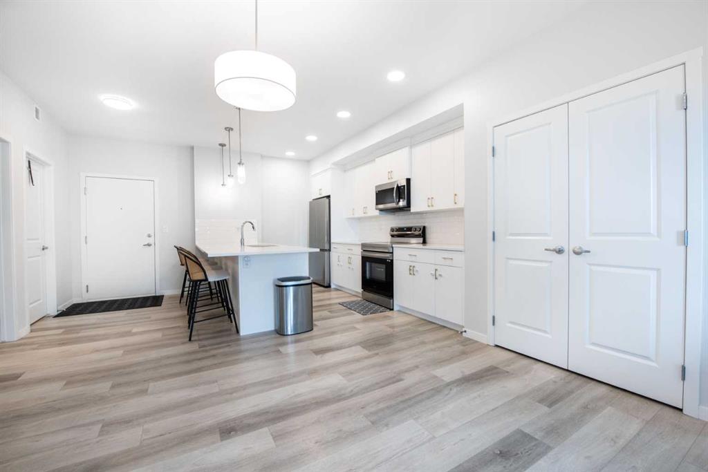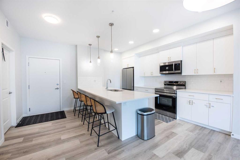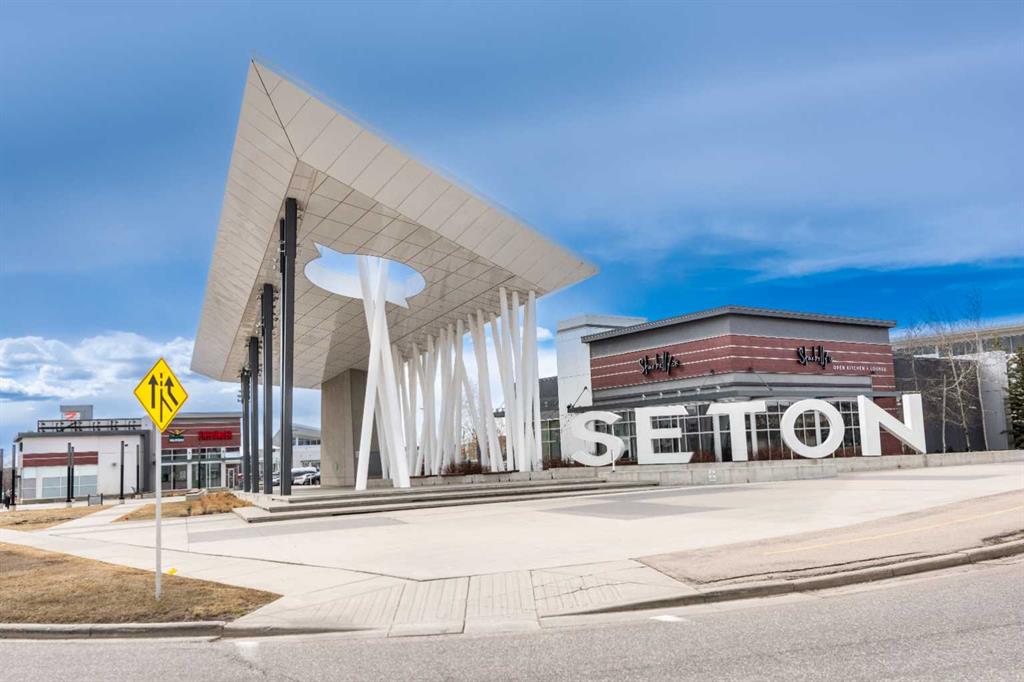 Welcome to this beautifully appointed third-floor condo located in the vibrant and walkable community of Seton. Perfect as a primary residence, investment property, or short/long term rental, this unit offers style, comfort, and unmatched convenience. Step inside to an open-concept layout featuring high-end finishes throughout. The upgraded kitchen boasts modern cabinetry, stainless steel appliances, an extended island, and elegant design—ideal for entertaining or relaxing evenings at home. The two spacious bedrooms are thoughtfully positioned on opposite sides of the living area, offering privacy and functionality. The primary suite includes a luxurious ensuite, while the second bedroom is perfect for guests, family, or a home office. A second full bathroom adds convenience for everyone. Additional highlights include in-unit laundry with side-by-side washer and dryer, a large in-unit storage space, and the bonus of only one shared wall with a neighboring unit, offering enhanced privacy and tranquility. Natural light pours in through large windows, creating a warm and inviting ambiance. Step out onto the expansive 109 sq ft balcony, stretching 15 feet wide, and enjoy summer evenings with a BBQ, convenient gas line connection. It’s the perfect outdoor retreat for relaxing, entertaining, or simply soaking in the sun. The unit also includes 1 titled stall in secure underground heated parking, ensuring year-round comfort and peace of mind. Seton is one of Calgary’s most desirable communities with quick access to Deerfoot and Stoney Trail, and just minutes from South Health Campus, the YMCA, shopping, dining, and more. Whether you're looking for a move-in-ready home or a term rental–friendly property, this condo checks all the boxes. Don’t miss out—book your showing today!