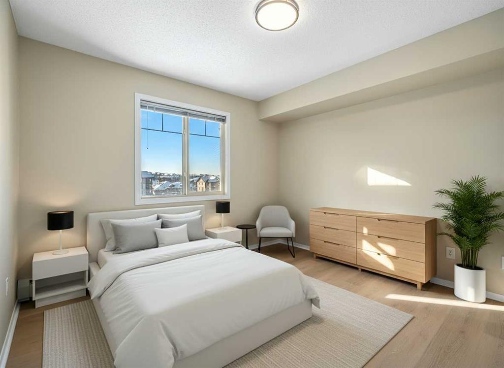 Designed for maximum privacy, the primary bedroom retreat features a walk-through closet and a private 4-piece ensuite. Positioned on the opposite side of the unit, the second bedroom offers excellent separation—perfect for roommates, guests, or a home office. A second full 4-piece bathroom adds flexibility and convenience.