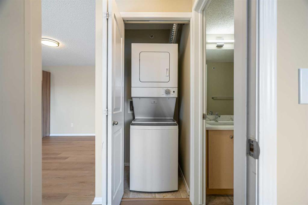 Enjoy the convenience of in-suite laundry with an upgraded washer and dryer, titled underground heated parking, an assigned storage locker, and easy elevator access.