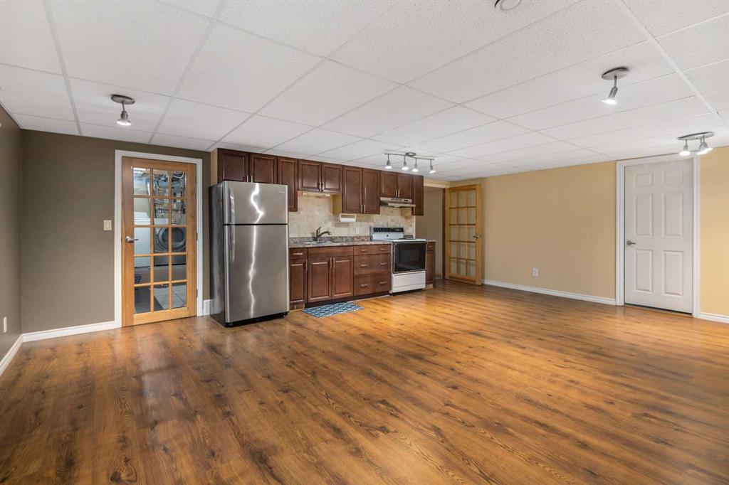 The main floor offers a bright, functional layout, while the lower level features a fully finished illegal suite. Outside, the huge corner lot provides an expansive yard for gardening, play, or entertaining. The property also includes a two-car gravel parking pad, ensuring plenty of off-street space for vehicles.