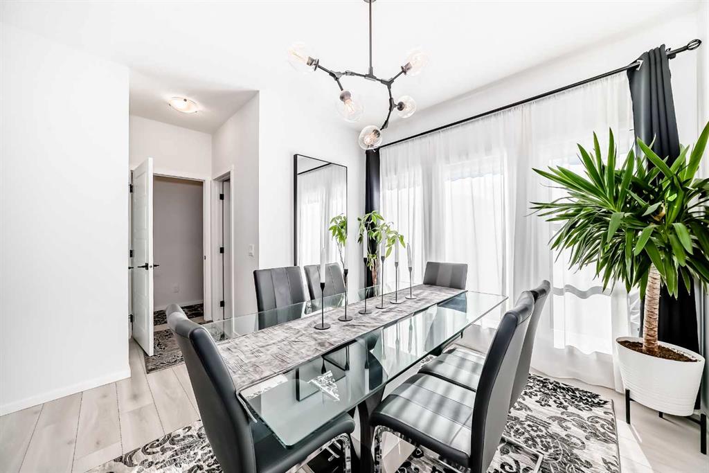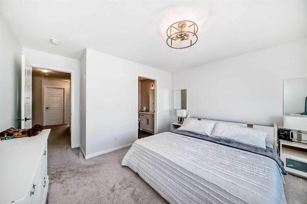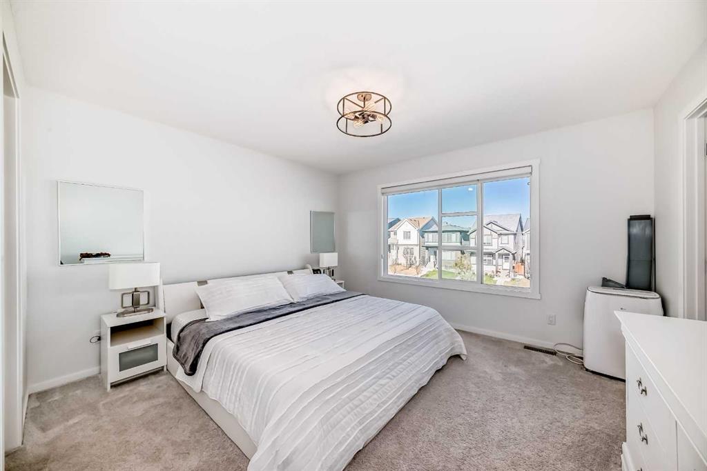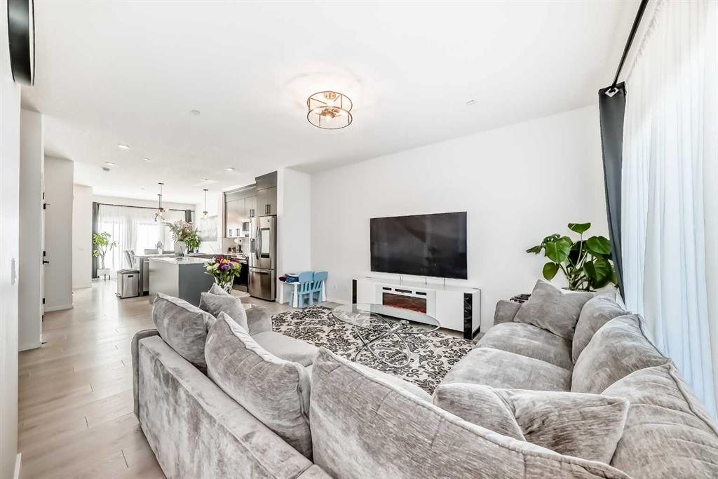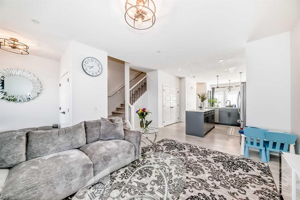 Modern & Bright 3-Bedroom Home in Desirable Livingston Welcome to contemporary living in the heart of the sought-after Livingston community! This stunning 3-bedroom home offers a modern design, stylish finishes, and a fantastic layout, perfect for a family or anyone looking for a move-in ready property with an exciting backyard space. Interior Highlights Step inside to a bright, open-concept main floor flooded with natural light. The inviting living room features a chic, neutral colour palette, beautiful flooring, and an elegant staircase, creating a sophisticated and comfortable space. The gourmet kitchen is a chef's dream, boasting striking blue-grey cabinetry, pristine white quartz countertops, sleek stainless steel appliances (including a modern fridge with a smart display), and a large central island perfect for meal prep and entertaining. Adjacent to the kitchen, the dining room offers a stylish space for family dinners with an eye-catching light fixture and large windows overlooking the yard. A convenient and beautifully appointed powder room is also located on the main floor. Upstairs, you'll find three generously sized bedrooms. The master suite is a true retreat, featuring a spacious layout, a large window with community views, a walk-in closet, and a private 3-piece ensuite bath. The two additional spacious bedrooms and a full main bathroom ensure comfort for everyone. For ultimate convenience, the laundry is also included on this level. Exterior & Community Features The home's exterior boasts attractive curb appeal with its modern architecture and striking siding. The private backyard is an oasis for relaxation and fun, featuring a well-maintained lawn, a back lane for easy access, and charming raised garden beds—perfect for a home gardener! A dedicated fire pit area makes it ideal for cool Calgary evenings and entertaining guests. The Livingston community offers exceptional amenities, parks, and easy access to major routes, making it a highly desirable place to call home. Don't miss the chance to own this exceptional property. Book your private showing today!