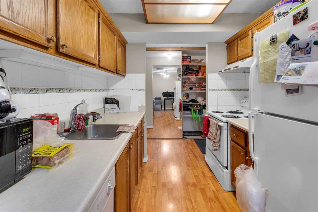 Discover unbeatable value in this 2-bedroom condo, located in a desirable, well-managed, and immaculately kept 18+ adult building in the sought-after community of Haysboro. Thoughtfully designed for comfortable everyday living, this home offers a functional layout with storage throughout—including a foyer closet complete with an organizer, currently used as a pantry. The large kitchen features an abundance of cabinet and counter space, making meal prep and entertaining a breeze. A separate dining area—rare in apartment-style living—adds warmth and versatility to the space.Step outside to the spacious south-east facing balcony, perfectly sized to relax and unwind or enjoy time with family and friends. Additional highlights include in-suite laundry with some space for storage, plus the added convenience of common laundry and a garbage chute on every floor. Condo fees provide exceptional value and true peace of mind by covering all utilities—heat, water, and even electricity—an increasingly uncommon feature in comparable buildings. Heated underground parking ensures comfort year-round. Residents also enjoy excellent amenities, including a fitness centre on the third floor and a welcoming main-floor social room complete with a kitchen, bathrooms, comfortable seating, TV, and vending machines.