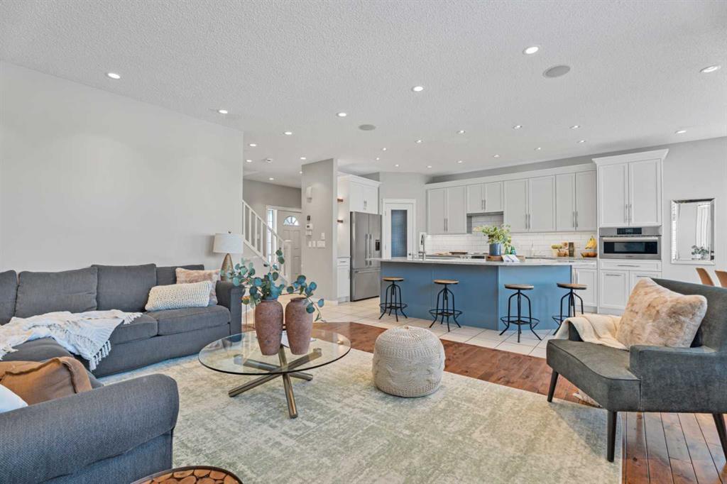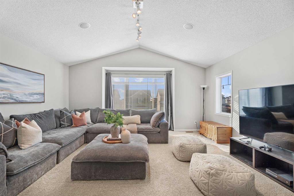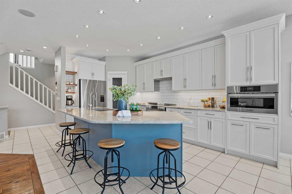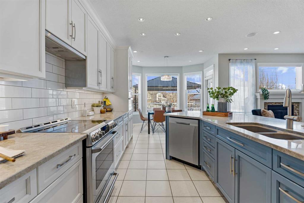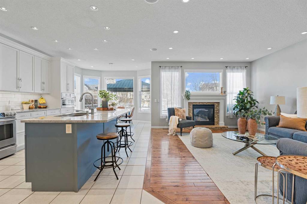 Welcome to your next home in the highly sought-after community of Drake Landing! Situated on a large corner lot backing onto walking paths and green space, this beautifully maintained home offers space, functionality, and thoughtful upgrades in a family-friendly neighbourhood known for its great neighbours and welcoming atmosphere. Lovingly cared for and beautifully updated, this home is move-in ready. A spacious front entrance welcomes you into a bright open-concept main floor filled with natural light from lots of windows. The centrepiece of the home is the kitchen, fully renovated in 2021. Featuring two-tone contemporary shaker cabinetry, one of a kind stone countertops, stainless steel appliances including a BOSCH microwave speed oven, and a massive single-level island with seating for six. Storage is outstanding with lots of deep drawers and cabinetry, a dual pull-out recycling station, a walk-in corner pantry and a stunning custom coffee station complete with walnut floating shelves and undermount lighting. The spacious living room creates a warm gathering space with a cozy gas fireplace focal point. The mudroom has lockers, bench seating, and hooks to keep busy family life organized, and a two-piece powder room completes the main level. Upstairs there's a massive vaulted west-facing bonus room that captures mountain views and provides the perfect space for relaxing or family movie nights. The primary enauite was remodelled in 2024, featuring a redesigned ensuite with a walk-in shower replacing the original soaker tub, updated tilework, a double vanity, and a toilet thoughtfully relocated behind a pocket door for added privacy. Two additional generously sized bedrooms, new vinyl flooring throughout all upstairs bedrooms and stairs replacing carpet, updated window blinds, and a full four-piece bathroom complete the upper level. The fully developed basement adds incredible flexibility with a bright and spacious laundry room featuring a high-efficiency washer and dryer, a three-piece bathroom, and two large rooms ideal for teenagers needing their own space, a home office, gym, or creative studio. Four floor-to-ceiling storage lockers provide exceptional storage solutions perfect for seasonal items and bulk shopping. The triple attached garage is a true standout, offering workshop-level functionality with a thermostat-controlled radiant gas heater, high-speed ventilation fan, hot and cold water taps, a centre floor drain, and corrugated metal siding for added fire protection. This thoughtful setup allows room to park two vehicles while maintaining a dedicated workshop bay. Outside, the professionally landscaped yard has been refreshed with updated garden beds, new sod in the backyard, and a newly planted front-yard tree in 2025. The refinished m
