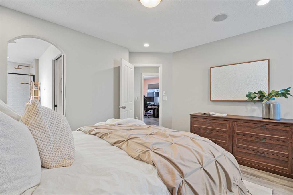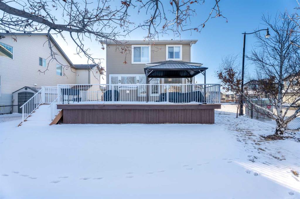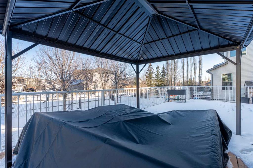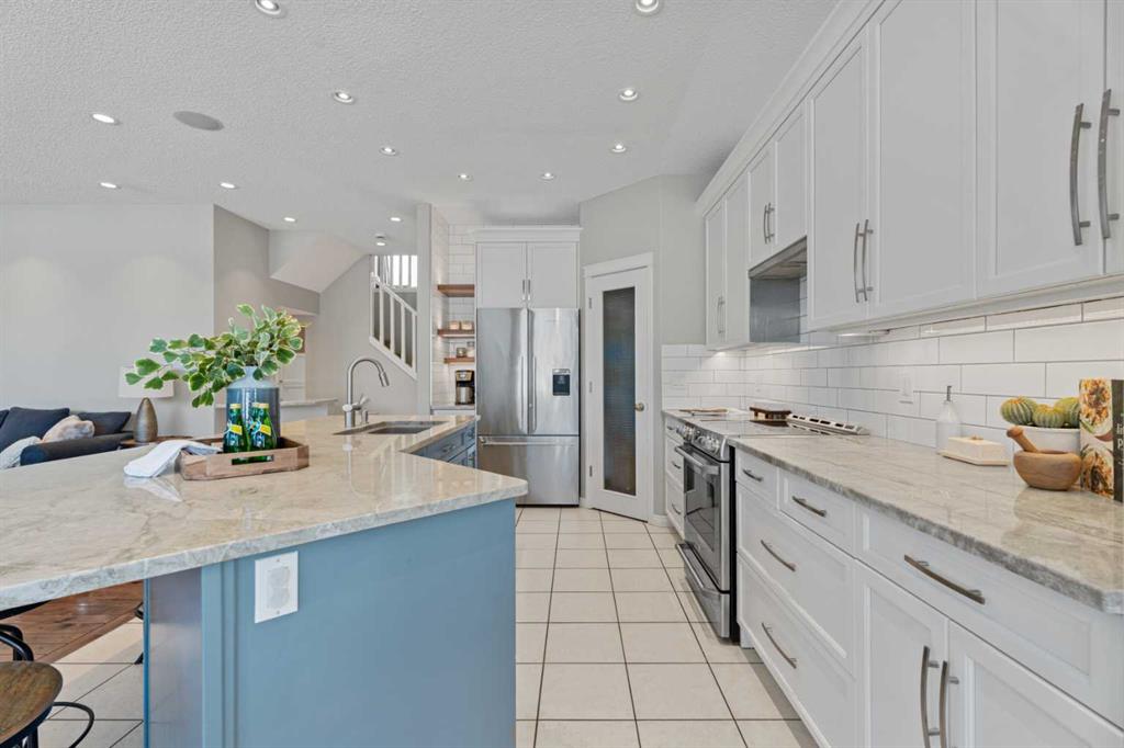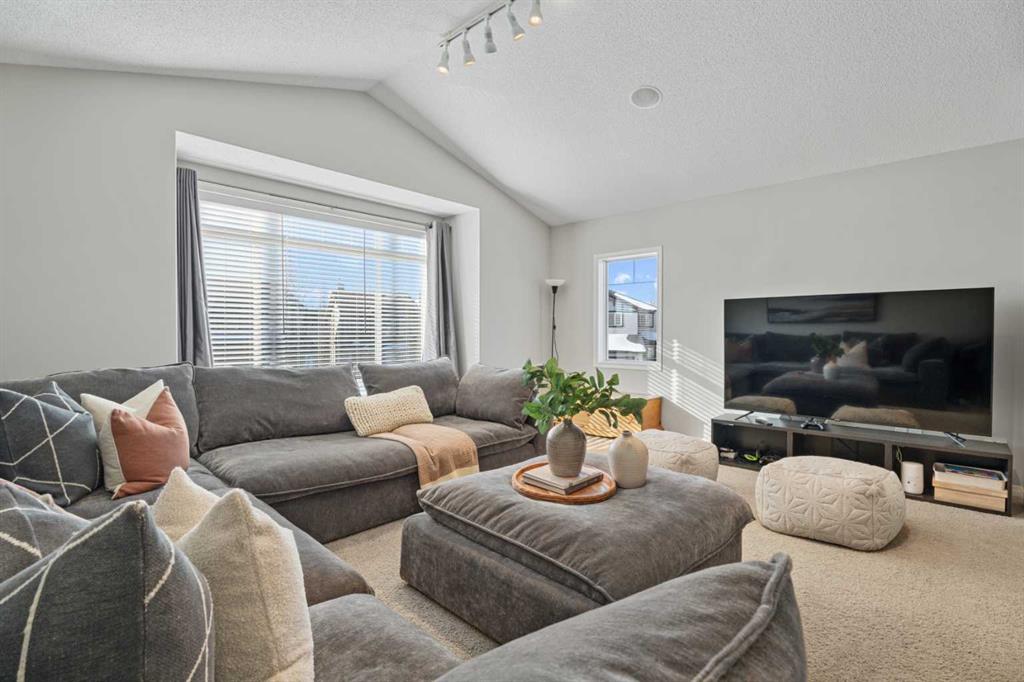 Welcome to your next home in the highly sought-after community of Drake Landing! Situated on a large corner lot backing onto walking paths and green space, this beautifully maintained home offers space, functionality, and thoughtful upgrades in a family-friendly neighbourhood known for its great neighbours and welcoming atmosphere. Lovingly cared for and beautifully updated, this home is move-in ready. A spacious front entrance welcomes you into a bright open-concept main floor filled with natural light from lots of windows. The centrepiece of the home is the kitchen, fully renovated in 2021. Featuring two-tone contemporary shaker cabinetry, one of a kind stone countertops, stainless steel appliances including a BOSCH microwave speed oven, and a massive single-level island with seating for six. Storage is outstanding with lots of deep drawers and cabinetry, a dual pull-out recycling station, a walk-in corner pantry and a stunning custom coffee station complete with walnut floating shelves and undermount lighting. The spacious living room creates a warm gathering space with a cozy gas fireplace focal point. The mudroom has lockers, bench seating, and hooks to keep busy family life organized, and a two-piece powder room completes the main level. Upstairs there's a massive vaulted west-facing bonus room that captures mountain views and provides the perfect space for relaxing or family movie nights. The primary enauite was remodelled in 2024, featuring a redesigned ensuite with a walk-in shower replacing the original soaker tub, updated tilework, a double vanity, and a toilet thoughtfully relocated behind a pocket door for added privacy. Two additional generously sized bedrooms, new vinyl flooring throughout all upstairs bedrooms and stairs replacing carpet, updated window blinds, and a full four-piece bathroom complete the upper level. The fully developed basement adds incredible flexibility with a bright and spacious laundry room featuring a high-efficiency washer and dryer, a three-piece bathroom, and two large rooms ideal for teenagers needing their own space, a home office, gym, or creative studio. Four floor-to-ceiling storage lockers provide exceptional storage solutions perfect for seasonal items and bulk shopping. The triple attached garage is a true standout, offering workshop-level functionality with a thermostat-controlled radiant gas heater, high-speed ventilation fan, hot and cold water taps, a centre floor drain, and corrugated metal siding for added fire protection. This thoughtful setup allows room to park two vehicles while maintaining a dedicated workshop bay. Outside, the professionally landscaped yard has been refreshed with updated garden beds, new sod in the backyard, and a newly planted front-yard tree in 2025. The refinished m