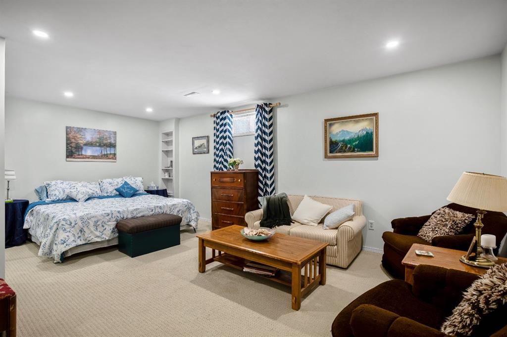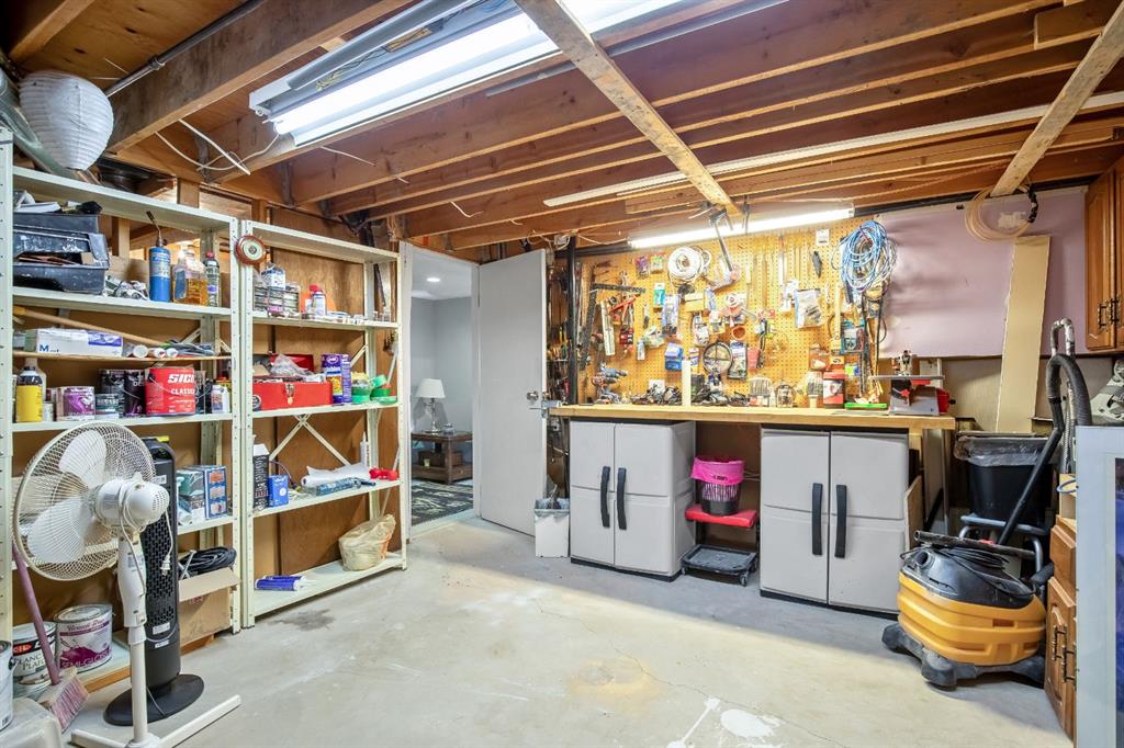 The fully developed basement adds additional living space with a warm family room, a large room/flex space(non-egress window), generous storage, a workshop area, and a dedicated wine-making space/kitchenette. Step outside to enjoy the large deck, fire pit area, and beautifully positioned yard backing onto the canal, with convenient back lane access. Additional highlights include a double attached garage, shingles replaced approximately 3 years ago, and a hot water tank updated in 2025.