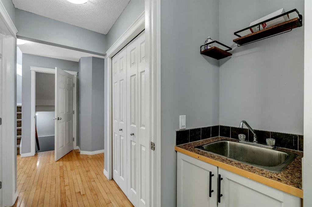 Freshly painted and fully finished, this 5 bedroom home offers over 3,300 sq ft of finished living space designed for large and growing families. Quiet cul-de-sac placement and an extra deep backyard add privacy and room to play, while recent upgrades including a brand new furnace, new hot water tank and central air conditioning ensure year-round comfort and peace of mind. A soaring open-to-above foyer creates a memorable first impression, anchored by hardwood flooring and a bright open layout. Culinary adventures are inspired in the kitchen with stainless steel appliances, abundant cabinetry, a corner pantry for extra storage and a huge island with raised breakfast bar seating, ideal for casual gatherings. The adjacent dining area opens directly to the rear deck for easy indoor/outdoor living. A welcoming living room invites relaxation in front of the gas fireplace flanked by built-ins, while French doors lead to a private den that makes an excellent office or study zone. A tucked-away powder room completes the main level. Cascading lighting guides you upstairs to a vaulted bonus room, an airy retreat perfect for movie nights or quiet family time. The primary suite delivers a true owner’s refuge with a walk-in closet and a 5-piece ensuite featuring dual sinks, a deep soaker tub and a separate shower. 2 additional bright bedrooms, one with a walk-in closet, share a well-appointed 4-piece bathroom. The finished basement expands your possibilities with a massive rec room for games and media and a flex space for hobbies or play. Also on this level are 2 more bedrooms and a stylish 5-piece bathroom with dual sinks, ideal for shared use. Outside, the extra deep backyard offers endless room for children, pets and gardening alongside a spacious deck for barbecuing and unwinding. A double attached garage adds convenience and storage. Walk to St Veronica School and the nearby pathways and playgrounds, with Coopers Crossing Town Promenade only 3 minutes away for groceries, dining, coffee and daily essentials. A rare blend of space, comfort, mechanical upgrades and an ideal family-friendly location!