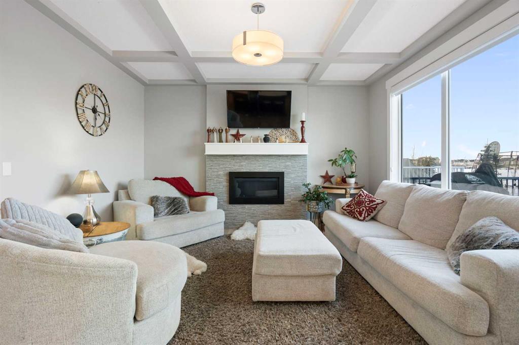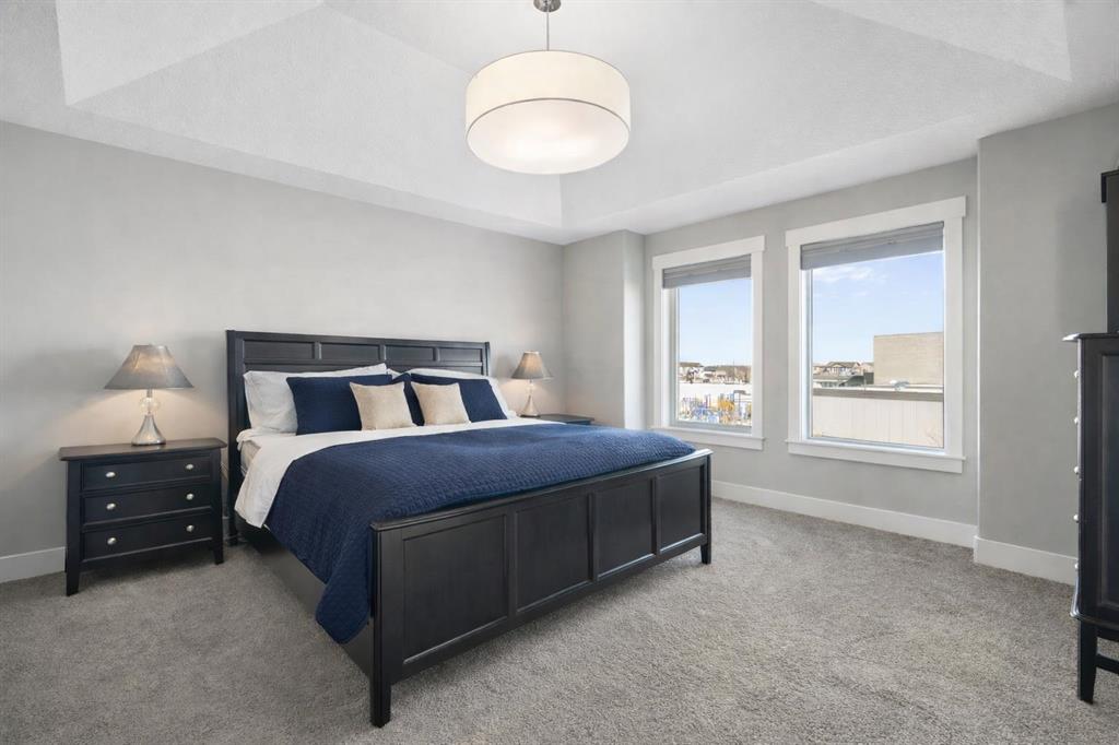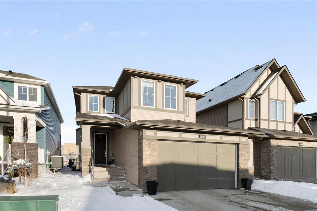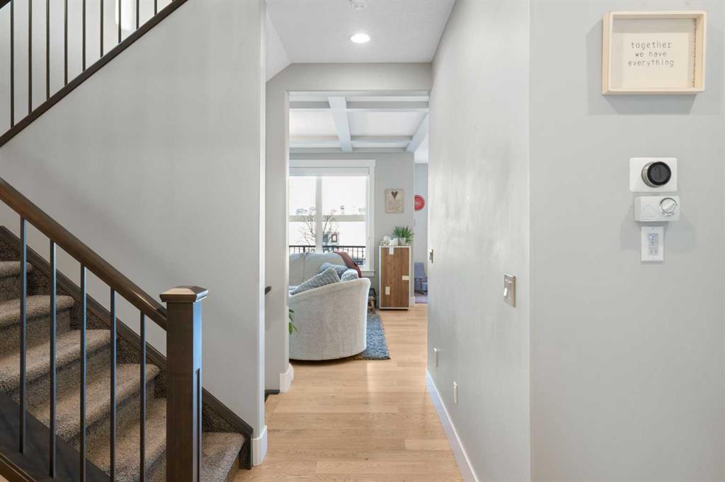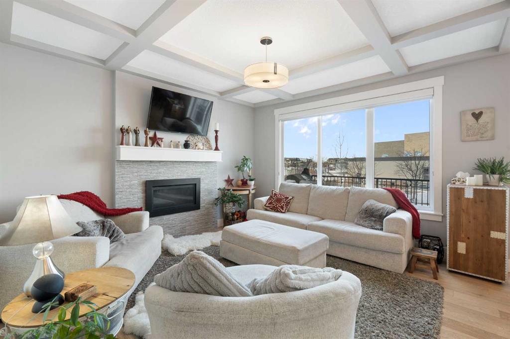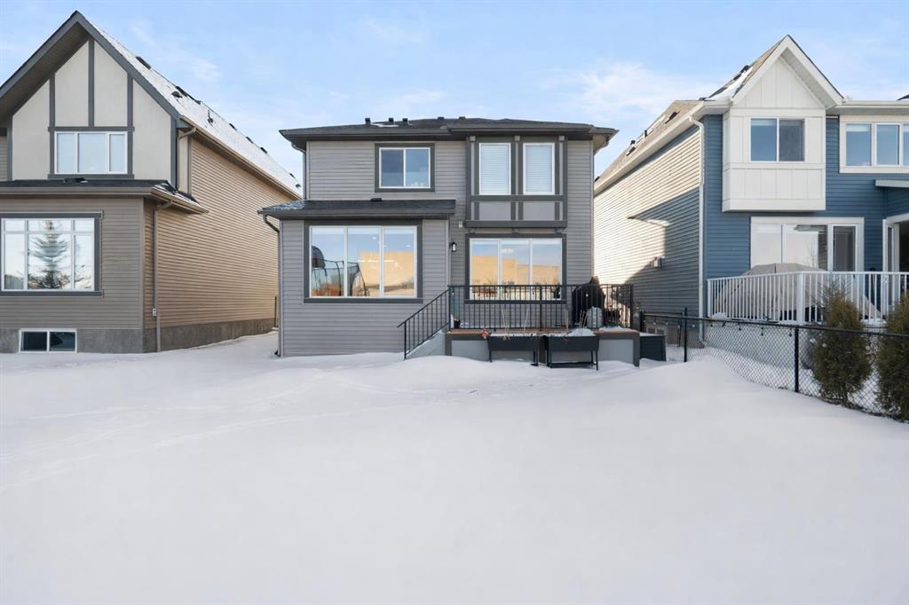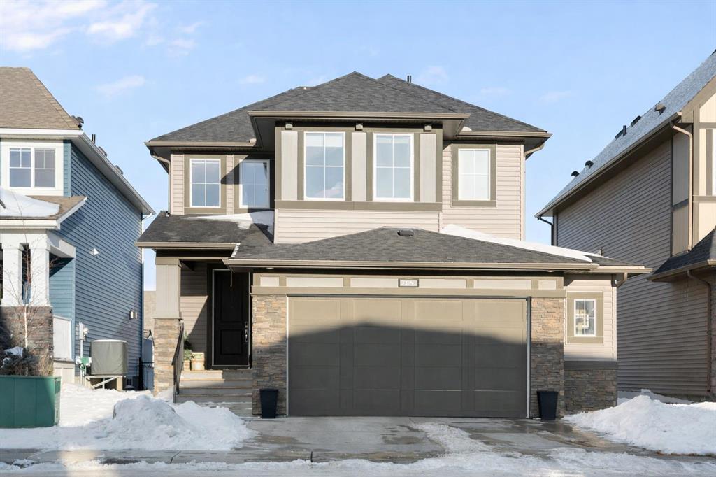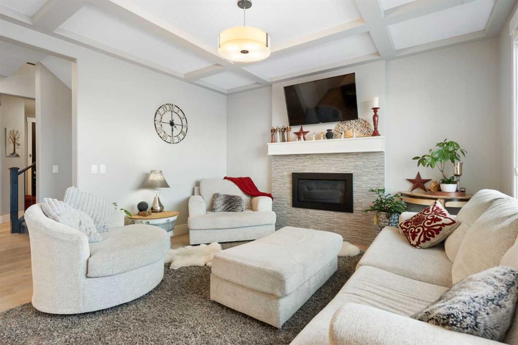 Welcome to a home that feels elevated from the very first step inside. Custom built by Harder Homes, this beautifully crafted two storey in Coopers Crossing offers over 3000 square feet of thoughtfully developed living space. With its distinctive exterior, sloped roof lines, and MASSIVE GARAGE, the curb appeal makes a strong first impression. Inside, the sense of space and intention continues. The main floor unfolds with a grand foyer that opens into a warm and welcoming great room, anchored by coffered ceilings and a GAS FIREPLACE that invites slow evenings and enjoyable gatherings. ENGINEERED HARDWOOD floors carry throughout, paired with 9' CEILINGS and 8' DOORS that add both height and presence. The kitchen is truly the heart of the home. Beautifully finished with ceiling height cabinetry, stainless steel appliances, and a generous center island, it offers exceptional storage and space to cook, host, & connect. The dining area sits just off the kitchen, filled with natural light and perfectly positioned for everyday meals or weekend entertaining. A dedicated MAIN FLOOR OFFICE creates a quiet place to work or study, tucked away yet still connected to the rhythm of the home. The mudroom leading to the garage is complete with built-ins and a charming barn door, keeping busy days organized. Every detail feels considered, right down to the Nest thermostat and the added AIR CONDITIONING (2022) for year round comfort. Upstairs, the layout is as functional as it is spacious. The primary suite feels like a true retreat, with room to unwind, a large WALK-IN CLOSET with custom built-ins, and a luxurious 5 piece ensuite featuring dual sinks, a deep soaker tub, & a spacious shower. Two additional bedrooms are generously sized and share a well appointed 5 piece bath with double sinks, ideal for growing families. The BONUS ROOM offers flexibility for movie nights or play space, complete with a rough in for speakers to elevate your home entertainment experience. An upgraded railing adds a refined architectural touch as you move between levels. The fully developed basement extends the living space even further, with a massive recreation and media area that easily adapts to your needs. A 4th bedroom, separate den and full 4 piece bathroom make it perfect for guests, teens, or multi generational living. Backing directly onto a school, the backyard setting offers both privacy and convenience, with no rear neighbours and quick access to green space and community pathways. Living in Coopers Crossing means being part of one of Airdrie’s most sought after neighbourhoods, known for parks, schools, and a strong sense of community. It is the kind of place where families put down roots and stay awhile. Book your private showing and experience it for yourself! *Some photos have been virtually staged*