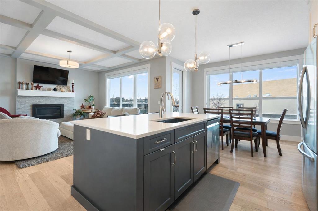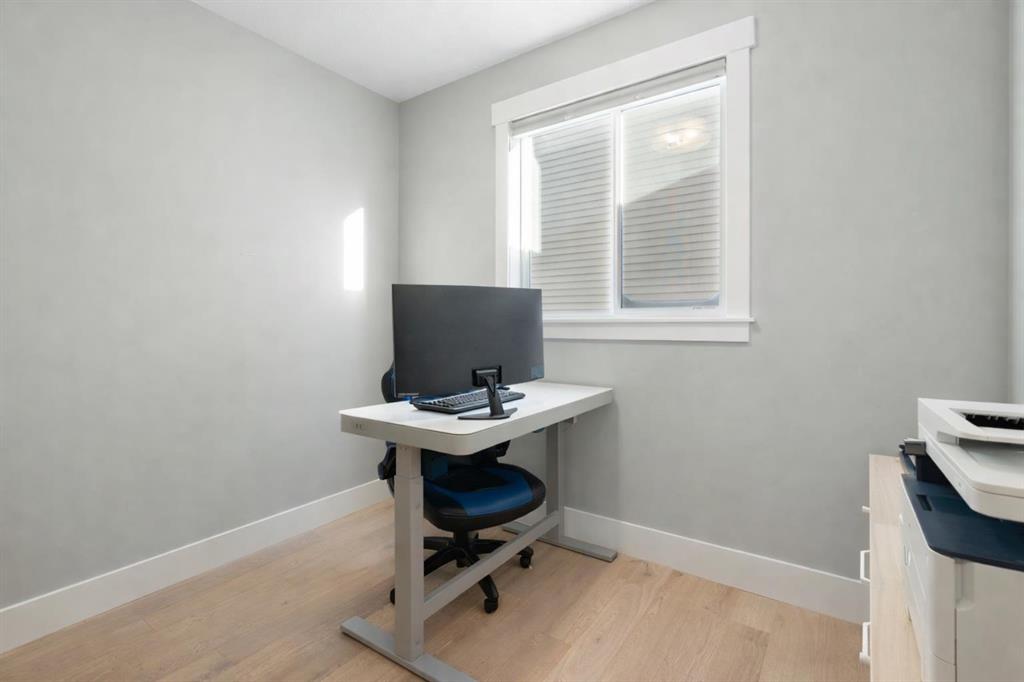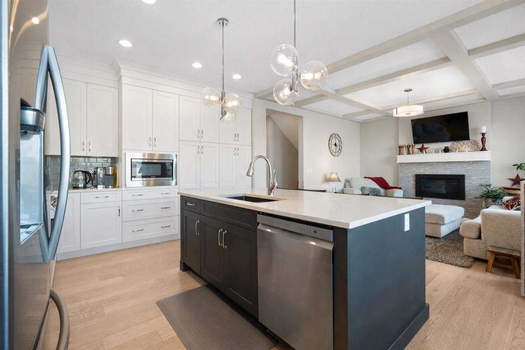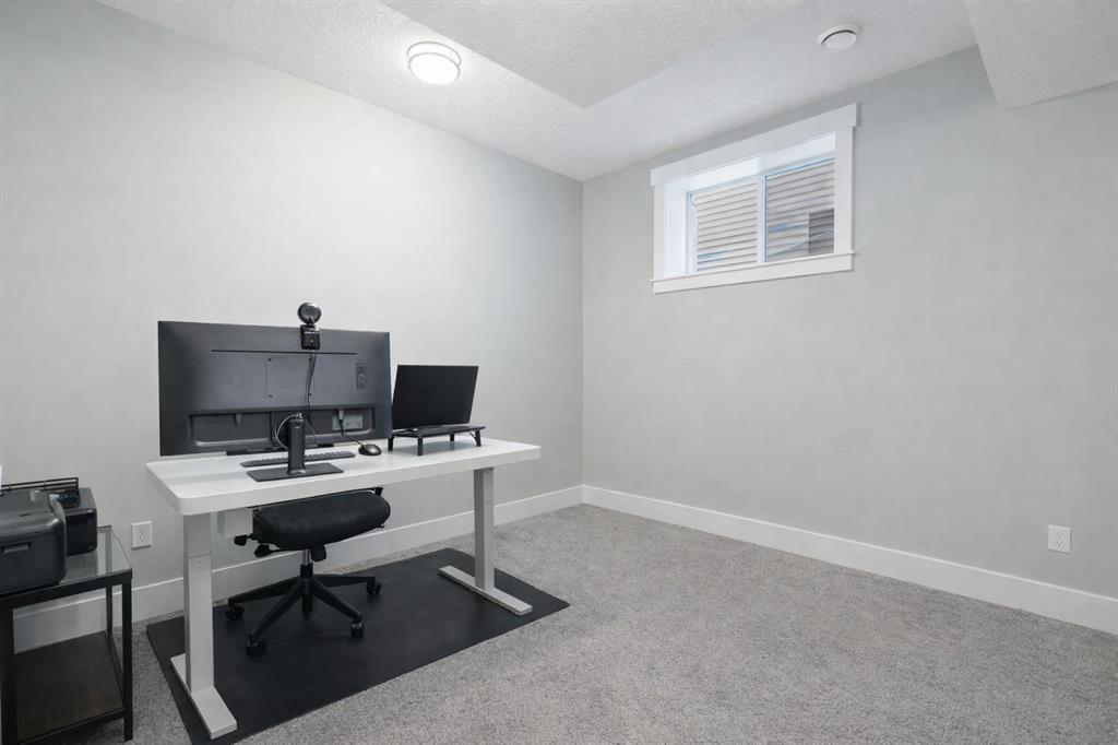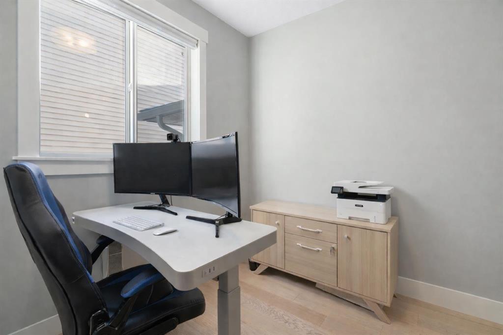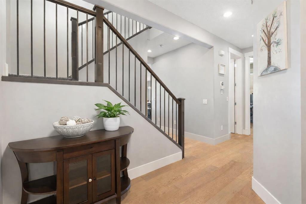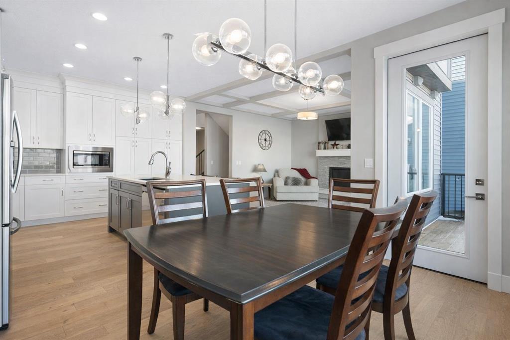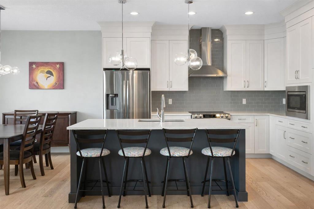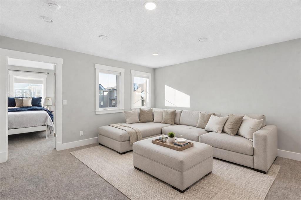 Welcome to a home that feels elevated from the very first step inside. Custom built by Harder Homes, this beautifully crafted two storey in Coopers Crossing offers over 3000 square feet of thoughtfully developed living space. With its distinctive exterior, sloped roof lines, and MASSIVE GARAGE, the curb appeal makes a strong first impression. Inside, the sense of space and intention continues. The main floor unfolds with a grand foyer that opens into a warm and welcoming great room, anchored by coffered ceilings and a GAS FIREPLACE that invites slow evenings and enjoyable gatherings. ENGINEERED HARDWOOD floors carry throughout, paired with 9' CEILINGS and 8' DOORS that add both height and presence. The kitchen is truly the heart of the home. Beautifully finished with ceiling height cabinetry, stainless steel appliances, and a generous center island, it offers exceptional storage and space to cook, host, & connect. The dining area sits just off the kitchen, filled with natural light and perfectly positioned for everyday meals or weekend entertaining. A dedicated MAIN FLOOR OFFICE creates a quiet place to work or study, tucked away yet still connected to the rhythm of the home. The mudroom leading to the garage is complete with built-ins and a charming barn door, keeping busy days organized. Every detail feels considered, right down to the Nest thermostat and the added AIR CONDITIONING (2022) for year round comfort. Upstairs, the layout is as functional as it is spacious. The primary suite feels like a true retreat, with room to unwind, a large WALK-IN CLOSET with custom built-ins, and a luxurious 5 piece ensuite featuring dual sinks, a deep soaker tub, & a spacious shower. Two additional bedrooms are generously sized and share a well appointed 5 piece bath with double sinks, ideal for growing families. The BONUS ROOM offers flexibility for movie nights or play space, complete with a rough in for speakers to elevate your home entertainment experience. An upgraded railing adds a refined architectural touch as you move between levels. The fully developed basement extends the living space even further, with a massive recreation and media area that easily adapts to your needs. A 4th bedroom, separate den and full 4 piece bathroom make it perfect for guests, teens, or multi generational living. Backing directly onto a school, the backyard setting offers both privacy and convenience, with no rear neighbours and quick access to green space and community pathways. Living in Coopers Crossing means being part of one of Airdrie’s most sought after neighbourhoods, known for parks, schools, and a strong sense of community. It is the kind of place where families put down roots and stay awhile. Book your private showing and experience it for yourself! *Some photos have been virtually staged*