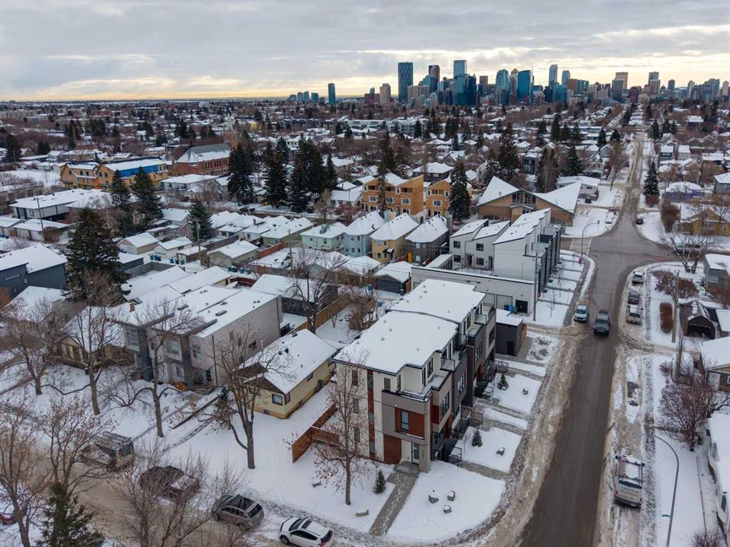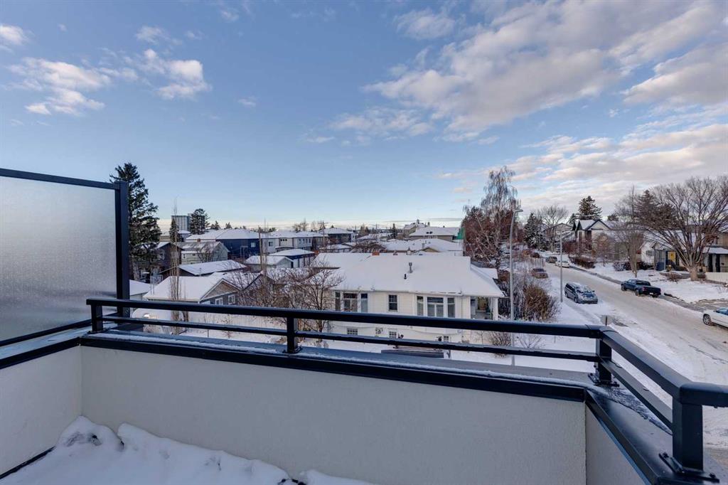 Mount Pleasant - 2122 7 Street NW: Welcome to this beautiful townhome offering 3 bedrooms, 4.5 bathrooms, a single-car garage, and over 2,100 sq ft of developed living space. Designed by respected Calgary architect John Trinh and Associates, this project showcases high-level craftsmanship, thoughtful material selection, and exceptional attention to detail throughout. The main floor features a spacious front entry, a bright living room with an electric fireplace and built-in shelving, and a central kitchen complete with stainless steel appliances, an island with seating, a pantry cupboard, and a dining area with access to the deck. A convenient two-piece powder room completes this level. The second floor offers two generously sized bedrooms, each with its own ensuite, one with a four-piece bathroom and the other with a three-piece. A well-equipped laundry room with cabinets, a sink, and a folding counter adds everyday convenience. The entire third level is dedicated to the primary retreat, featuring exclusive access to the top-floor balcony, a walk-in closet, and a luxurious five-piece ensuite with dual sinks, a soaker tub, and a walk-in shower. The lower level features an open studio-style legal suite with a private entrance, its own full kitchen equipped with stainless steel appliances, a comfortable living area, and a four-piece bathroom. Ideally located in the heart of Mount Pleasant, one of Calgary’s most desirable mature communities, this home offers easy access to Confederation Park, SAIT, and the University of Calgary. Enjoy a quick commute to downtown along with nearby transit routes on 4 Street, Centre Street, and 20 Avenue, plus a great selection of local restaurants and coffee shops.