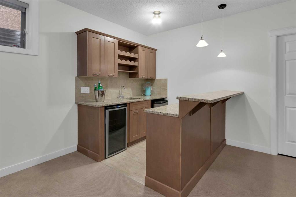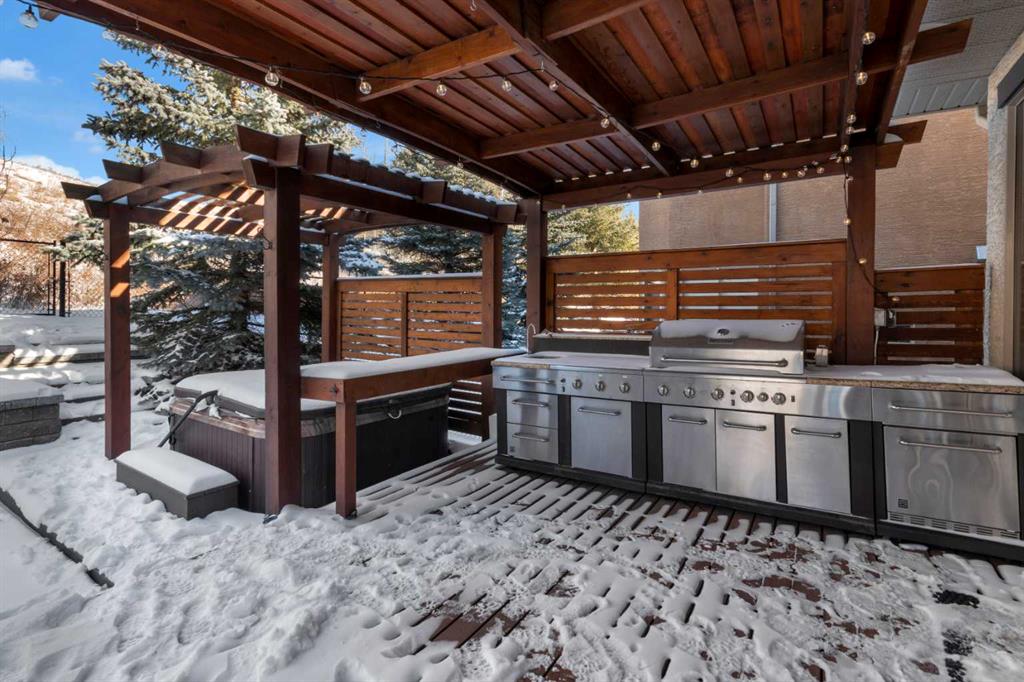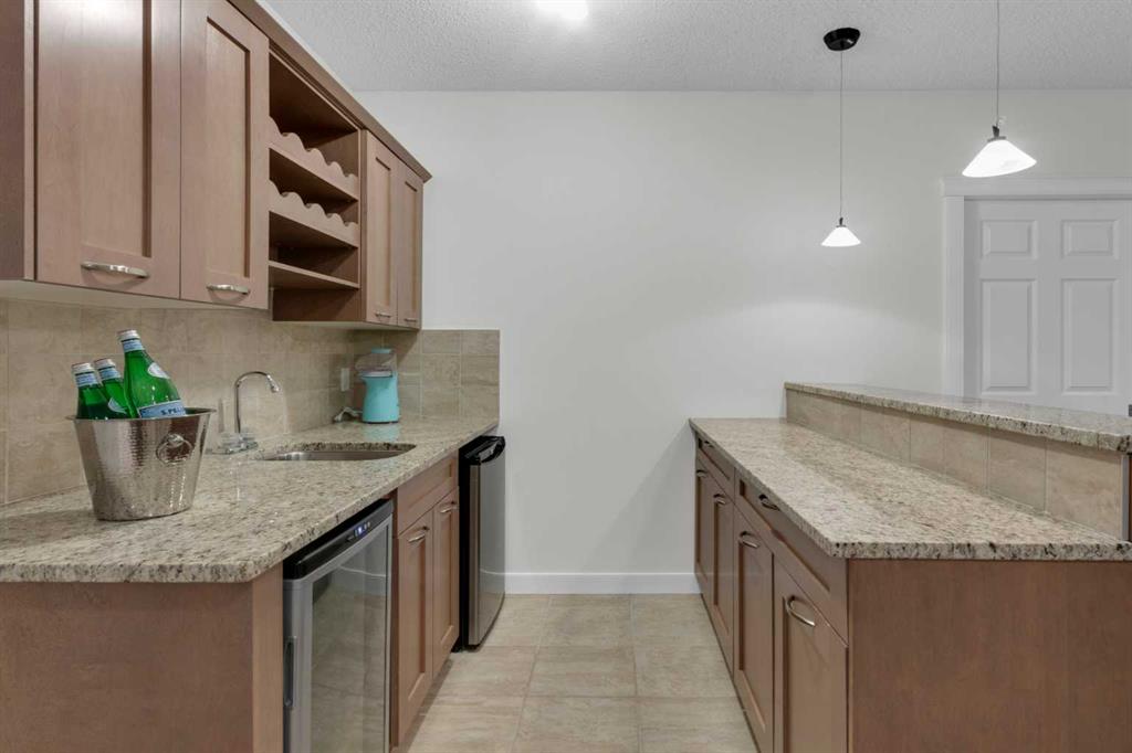 Located in Discovery Ridge & backing onto a hillside & green space, this exceptional home offers ultimate privacy & a serene natural setting. The main level features 9-foot ceilings & an open-concept design, highlighted by a two-sided fireplace with a discreet TV hidden behind a two-way mirror, seamlessly connecting the living area to an executive office. A well-organized mudroom is thoughtfully designed to support a busy family lifestyle. The kitchen is a true showpiece, featuring a professional Miele appliance package, abundant wood cabinetry, granite countertops, tile backsplash, coffee bar, breakfast nook, & a massive breakfast bar—perfect for entertaining. Patio doors just off the breakfast nook create a seamless transition to the outdoor living space, making indoor/outdoor gatherings effortless in any weather. Upstairs, you’ll find a spacious bonus room, a large primary suite with a completely renovated dream ensuite featuring quartz countertops, convenient upper-level laundry, & two additional well-sized bedrooms. The fully developed lower level offers incredible versatility with an open recreation room, games area, wet bar with bar fridge & wine cooler, corner gas fireplace, two additional bedrooms & a fully renovated four-piece bathroom. The oversized double garage is fully finished with storage shelving & still accommodates a full-size truck. Outside, the beautifully landscaped backyard is an entertainer’s paradise, complete with a covered outdoor grill, BBQ gas line, hot tub, underground sprinklers, & a garden shed. Additional upgrades include two new furnaces, new blinds, new air conditioning & renovated all bathrooms (approx. $120,000). Ideally located just a short walk to the Elbow River, Griffith Woods Park, and the Discovery Ridge shopping centre, this home offers an unparalleled lifestyle surrounded by nature & convenience. Welcome home!