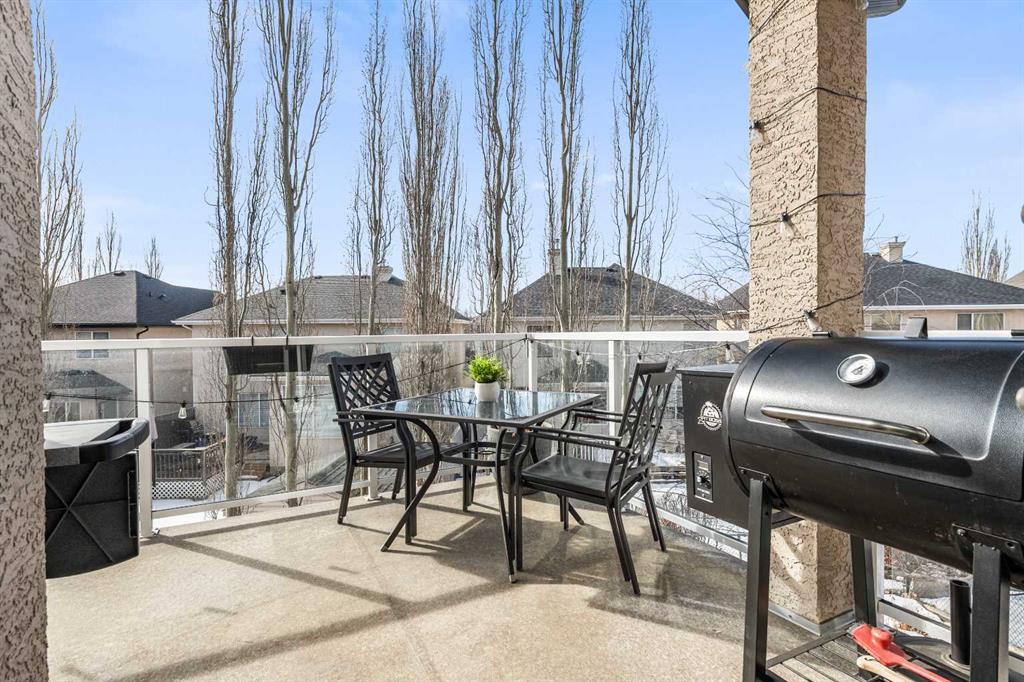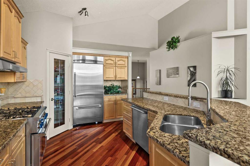 **OPEN HOUSE SUN MAR 8 from 2-4 PM** Rare opportunity to own a beautifully designed walk-out bungalow on an expansive, tree-lined pie-shaped lot (over 630 m2) with a coveted southwest-facing backyard. Offering nearly 3,000 sqft of developed living space, this thoughtfully designed home blends exceptional functionality, natural light, and effortless everyday living. Impressive curb appeal welcomes you with a heated, attached double garage and inviting front entry. The elevated main level spans approximately 1,559 sqft and showcases vaulted ceilings, rich Brazilian cherry hardwood flooring, and a bright open-concept layout. The spacious living room, anchored by a gas fireplace, flows seamlessly into the kitchen and breakfast nook, creating a warm and connected space ideal for both entertaining and daily life. The well-appointed kitchen features Thermador stainless steel appliances, a 5-burner gas range, maple cabinetry, granite countertops, a generous corner pantry, and a sit-up island. A separate formal dining room with built-in hutch niche provides flexibility for hosting and special occasions. The primary retreat offers new plush carpeting, a large west-facing window, and a striking three-way gas fireplace shared with the spa-inspired ensuite, complete with jetted soaker tub, separate shower, and walk-in closet. A second bedroom or ideal home office, full bathroom, and convenient laundry/mudroom with Electrolux washer and new dryer (2025) and direct garage access complete the main level. The heated garage includes epoxy flooring, built-in shelving, and a workbench. Additional features of this home include central air conditioning and a new roof (2020). The fully finished walk-out level expands your living space with a large recreation area, family room with gas fireplace, and custom solid maple entertainment built-ins. Oversized windows and patio sliding doors allow natural light to pour in. Two additional versatile bedrooms provide space ideal for guests, teens, or fitness room and are privately positioned alongside a full bathroom with heated floors. A spacious mechanical with new hot water tank (2024), and storage room adds valuable functionality. Step outside to your private Southwest-facing backyard oasis on this rare oversized pie lot, complete with mature trees, planter boxes, multizone irrigation, expansive patio, a standalone wood-burning fireplace, and hot tub (serviced December 2025). The setting offers both privacy and exceptional space for summer entertaining. Situated on a quiet cul-de-sac just steps from pathways, parks, shopping, and amenities, residents also enjoy access to the Cranston Residents Association with year-round programs, events, tennis courts, outdoor rink, and community facilities. This home presents a lifestyle opportunity rarely available, ideal for those seeking the ease of single-level living with additional room for family and guests, or downsizers who still value space for entertaining. Book your private showing today!
