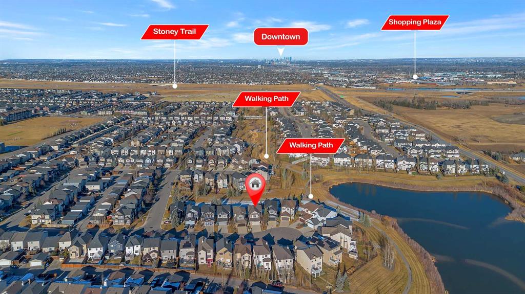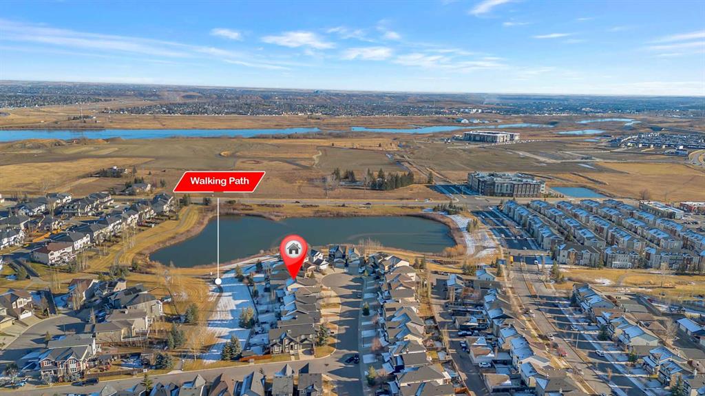 Welcome to this exceptional 2-storey walkout, perfectly situated on a quiet cul-de-sac and backing onto a serene walking path, green space, and picturesque pond. Located on a traditional lot with space on both sides (not a zero-lot-line property), this home offers privacy, room to grow, and over 2,800 sq. ft. of developed living space with immaculate pride of ownership. Inside, you’re greeted by gleaming hardwood floors, 9-ft ceilings, fresh paint, and an open-concept layout. The main level features a formal dining room and a bright living room with a cozy corner gas fireplace. Large windows capture tranquil views of the pond, bringing in an abundance of natural light. The beautifully updated kitchen is a chef’s dream, with a large center island topped in quartz, stainless steel appliances, maple cabinetry, a corner pantry, and a spacious bumped-out eating nook. Step through the patio doors onto a massive full-length deck with aluminum railing, perfect for morning coffee or evening sunsets, all while enjoying exceptional privacy. Upstairs, you’ll find a generous bonus room, a luxurious primary retreat with a walk-in closet and full ensuite, plus two additional bedrooms and another full bathroom.