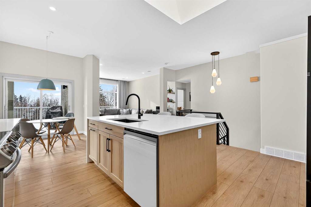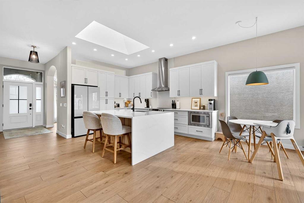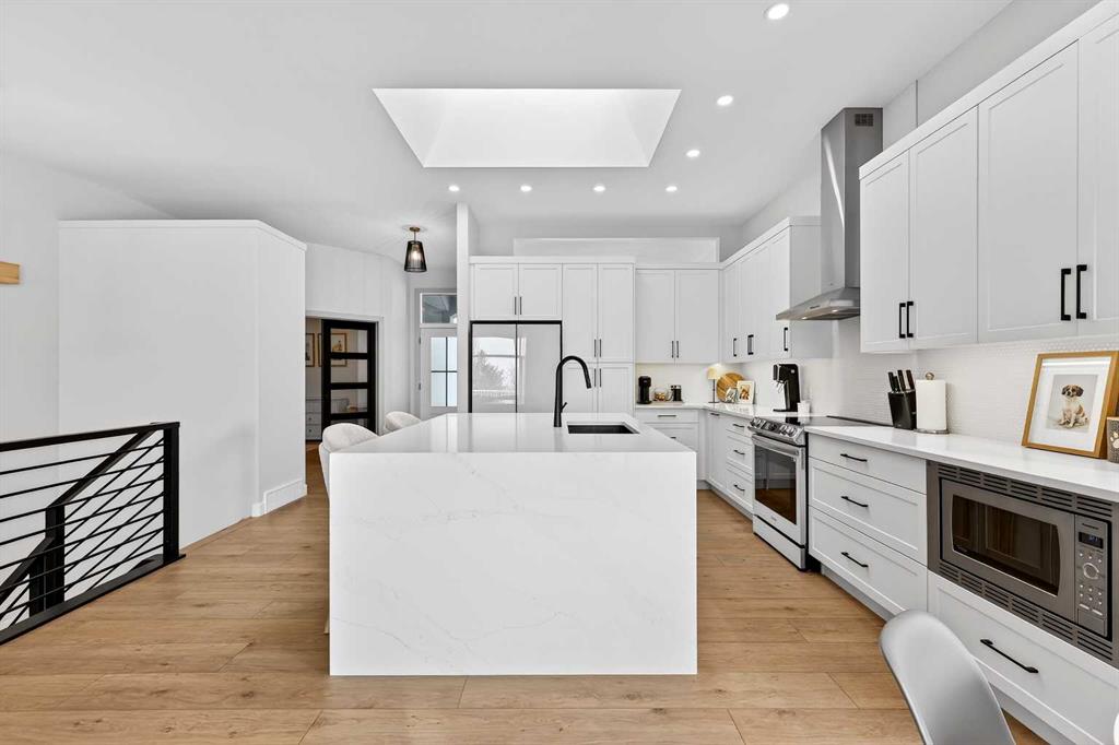 Welcome to an exquisitely renovated walk-out bungalow in the beautiful & highly sought-after community of McKenzie Lake-where established charm, wide tree-lined streets & true sense of community create an exceptional place to call home. Offering over 2,800 sq.ft. of beautifully developed living space, this long-time family-owned residence has been completely transformed & is now ready to welcome its next chapter. Every corner has been thoughtfully refreshed, blending timeless design with modern sophistication. From the moment you step inside, you’re greeted with wide plank luxury vinyl flooring, striking new front door with sleek black hardware, crisp fresh paint, transom window detail & refined flat-finish ceilings with inset lighting, creating a feeling straight from the pages of a lifestyle magazine. A stunning formal dining room framed by an oversized window, designer chandelier & elegant arched doorway sets the tone for memorable gatherings. The private main-floor den, currently styled as a nursery, offers flexibility as a serene home office or retreat. The open-concept living space seamlessly showcases the heart of the home-a beautifully reimagined kitchen featuring a dramatic white quartz waterfall island with soft grey veining, 2-toned cabinetry, stylish hardware, undermount sink, built-in microwave, sleek appliances, chimney hood fan backed by penny tile & skylight that floods the space with natural light. The adjacent living room is anchored by a bold black shiplap feature wall with built-in speakers & a large picture window framing the greenery beyond. A charming breakfast nook sits beside French sliding doors leading to the upper deck-the perfect vantage point to enjoy the expansive yard & peaceful greenspace. The spacious primary highlights the impressive 10-foot ceilings of the main floor & is complemented by a spa-inspired ensuite featuring a freestanding soaker tub, dual vanities with quartz counters, designer lighting & mirrors; a striking tiled shower with built-in shelving & modern fixtures. A stylish powder room & thoughtfully designed laundry room with cabinetry, folding counter & hanging space complete the main level. The fully finished walk-out expands your living & entertaining space with a sophisticated wet bar adorned with shiplap detailing, cabinetry & bar fridge-all overlooking a cozy family room with stone-surround fireplace & mantle. A spacious recreation area offers room for a pool table & gatherings, while 2 additional bedrooms-both with walk-in closets & beautifully renovated bathroom provide comfort for family or guests. The generous utility room doubles as a home gym. Step outside to your private backyard oasis backing onto an expansive greenspace. With no immediate rear neighbours & walking paths in the distance, you’ll enjoy both privacy and connection to nature-the perfect balance. This is more than a home-it’s a lifestyle. A place where neighbours know each other, pride of ownership is evident & every drive home feels right