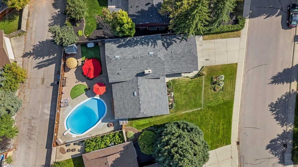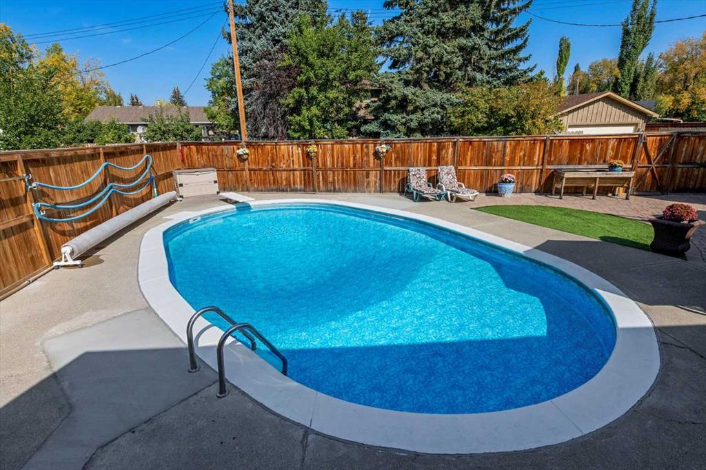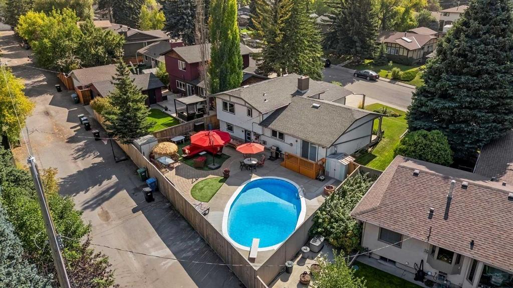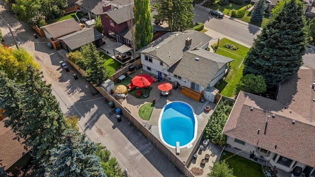 Welcome to your forever home, perfectly nestled on a quiet cul-de-sac in the heart of Lake Bonavista—one of Calgary’s most prestigious lake communities. This beautiful 4-level split home offers the ideal blend of space, comfort, and lifestyle, with 5 bedrooms, 4 bathrooms, and a backyard that feels like your own private resort. Step inside and you’ll immediately feel the warmth and charm of this inviting home. The bright, spacious living room is bathed in natural light thanks to new triple-pane windows and automated drapes, creating a cozy yet elegant atmosphere. It flows effortlessly into the dining room—perfect for hosting holidays or Sunday dinners—with a newer patio door that leads you out to the backyard. The kitchen is both functional and flexible, with room for a breakfast nook or extra cabinetry to suit your needs. Upstairs, the primary suite easily fits king-sized furniture and features his and hers closets plus a private ensuite. Two additional bedrooms and a full bathroom complete the upper level. On the lower level, you'll find a warm and welcoming family room with custom built-ins and a brick wood-burning fireplace with gas starter—ideal for cozy nights in. There’s also a fourth bedroom, a full laundry room and convenient walkout access to the backyard. And what a backyard it is! Designed for both relaxation and entertaining, it features a heated inground pool, fire pit, raised garden boxes, and low-maintenance artificial grass—so you can spend less time on upkeep and more time enjoying the outdoors. The fully finished basement adds even more versatility with a fifth bedroom (great for a guest room, home office, or gym), a full bathroom, a large rec room, and more storage space. This home has been lovingly maintained and thoughtfully updated including sump pump & exterior paint touch ups (2025), triple-pane windows throughout, patio door, new soffits and fascia (2021), water tank, outdoor pool pump & filter (2020) and two new furnaces (2015) offering peace of mind for years to come. This exclusive, residents-only lake community offers unmatched year-round amenities—swimming, paddleboarding, kayaking, tennis, and beach volleyball in the summer, and ice skating, tobogganing, snowshoeing, and even ice fishing in the winter. The lake is stocked twice a year, and 52 acres of sparkling water are surrounded by 25 acres of lush green space and mature trees. Enjoy family-friendly events like movies in the park, Stampede BBQs, food truck nights, and seasonal festivals—all just steps from your door.Families will love being close to top-rated schools, including Lake Bonavista School, Andrew Sibbald, St. Boniface, St. Bonaventure, Sam Livingston, Nickle Jr. High and Dr. EP Scarlett High School. With quick access to Macleod Trail, Deerfoot, Stoney Trail, and even weekend getaways to the mountains, this location truly has it all. This is more than just a home- it's a lifestyle and it’s ready for you to move in, add your personal updates and start making memories!