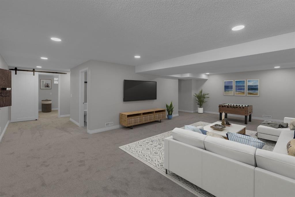 This exquisite, 1,314 sq. ft. bungalow with a fresh top-to-bottom, inside-and-out renovation, showcases exceptional craftsmanship and thoughtful design throughout. The beautifully updated exterior (new soffits, fascia, gutters, insulated vinyl siding and added 1” insulation board), pairs with the striking new front door and glasswork, to create outstanding curb appeal. Step inside to a welcoming foyer that opens into a bright and comfortable living room highlighted by a corner gas fireplace. Luxury vinyl plank flooring and brand new windows (offering additional energy-efficient insulation) extend throughout the bright and airy main floor. Leading from the living area, the fully redesigned kitchen is truly the heart of the home. Featuring stylish new cabinetry, a modern backsplash, and elegant quartz countertops, this culinary space blends functionality with refined finishes. A large window enhances the openness, while the appliance package, including a Samsung stainless steel induction stove, a Frigidaire Gallery double-door refrigerator with a versatile temperature-controlled drawer, and a Bosch dishwasher, add a true premium touch for the home chef. The main level offers three generous-sized bedrooms, providing ample space for family living. Both of the main floor bathrooms, including the primary bedroom’s 2-pc ensuite, and the main bathroom, feature granite countertops, with the main bath boasting a JennAir programmable heated backrest bathtub, perfect for unwinding at the end of the day. Wrought iron railings greet you at the top of the stairs as you descend into the newly updated basement. Downstairs, the recently refreshed basement features new paint, updated lighting, plush carpeting with quality underlay, and another renovated bathroom. The spacious laundry room is accented by a charming sliding barn door, while an oversized storage/workshop area offers excellent versatility. Additional home features include newly replaced shingles (5 months old) and topped up insulation in the attic. Outside, the expansive backyard is designed for both relaxation and entertaining. Enjoy summer evenings on the massive deck, gather around the fire pit area, and take advantage of the RV/car parking area and the included storage shed. The generous yard provides plenty of room for children, pets, and hosting family and friends. Located on a quiet cul-de-sac with a park and playground directly across from your front door, this home offers a wonderful view as well as a safe place for children to play within eyesight. Ideally situated with convenient access to Nose Hill Park, Deerfoot City, and the Calgary International Airport, this home is also close to grocery stores, dining, shopping, schools, and pathways, making everyday living effortless. This is a rare opportunity to own a meticulously renovated property in a desirable and convenient location.