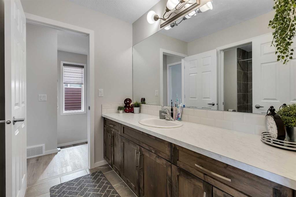 The main floor features a bright and open layout with 9-foot ceilings, large windows, and luxury vinyl plank flooring extending through both the main and upper levels. The spacious living room is highlighted by a central fireplace, creating a warm and inviting atmosphere. The kitchen is both stylish and functional, showcasing maple cabinetry, quartz countertops, a large centre island, stainless steel appliances, and a generous pantry. Just off the kitchen is the dining nook with patio doors leading to the fully fenced and landscaped backyard — perfect for entertaining or relaxing outdoors. Upstairs, you’ll find a well-designed floor plan complete with a bonus room, a spacious primary bedroom featuring a walk-in closet and full ensuite, plus two additional bedrooms, a full bathroom, and a convenient upper-level laundry room. The unfinished basement includes a separate side entrance, offering excellent potential for future development or a possible suite (subject to city approval). Additional features include central air conditioning, a double attached garage, a large driveway, great curb appeal, and a quiet street location.