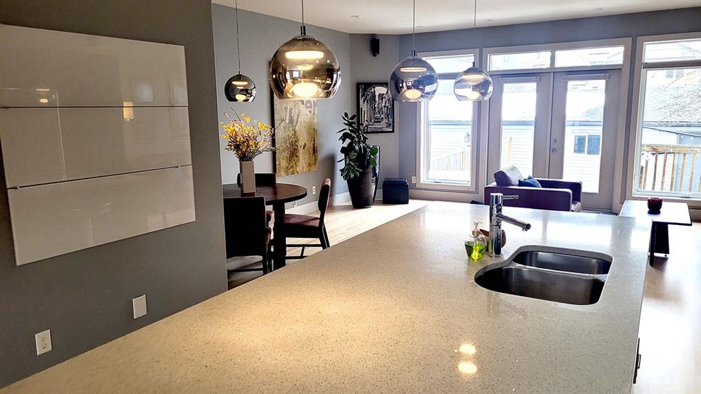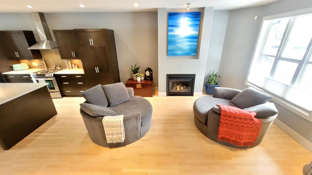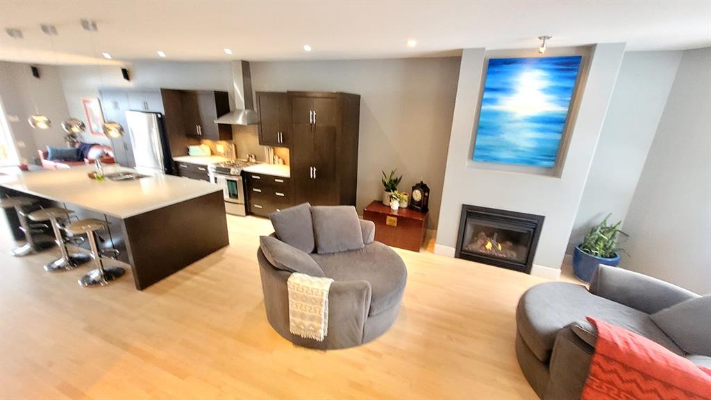 This two storey home has over 2800 square feet of developed space. Step inside and you’re welcomed by beautifully refinished hardwood floors and a bright, open main floor designed for everyday living and entertaining. The layout flows effortlessly from the sitting area into the kitchen, dining space, and comfortable living room.