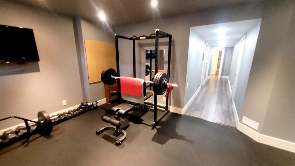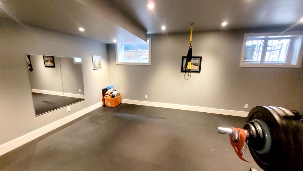 The fully developed lower level offers excellent flexibility with a large recreation room currently used as a gym, a full bathroom, and another bedroom with a walk-in closet. The dedicated bike room could also be converted into a fourth bedroom if needed.