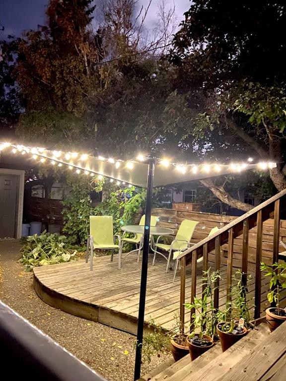 The dining and living areas open through west-facing double doors to the sunny backyard and two-tier deck, creating the perfect indoor-outdoor connection. The yard is complemented by a detached double garage.