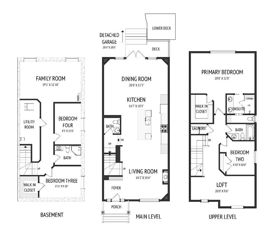 Upstairs, you’ll find two generous bedrooms and a versatile loft that can easily be converted into a third upper bedroom if desired. The spacious primary suite includes a walk-in closet and a well-appointed ensuite with double sinks and a large steam shower.
