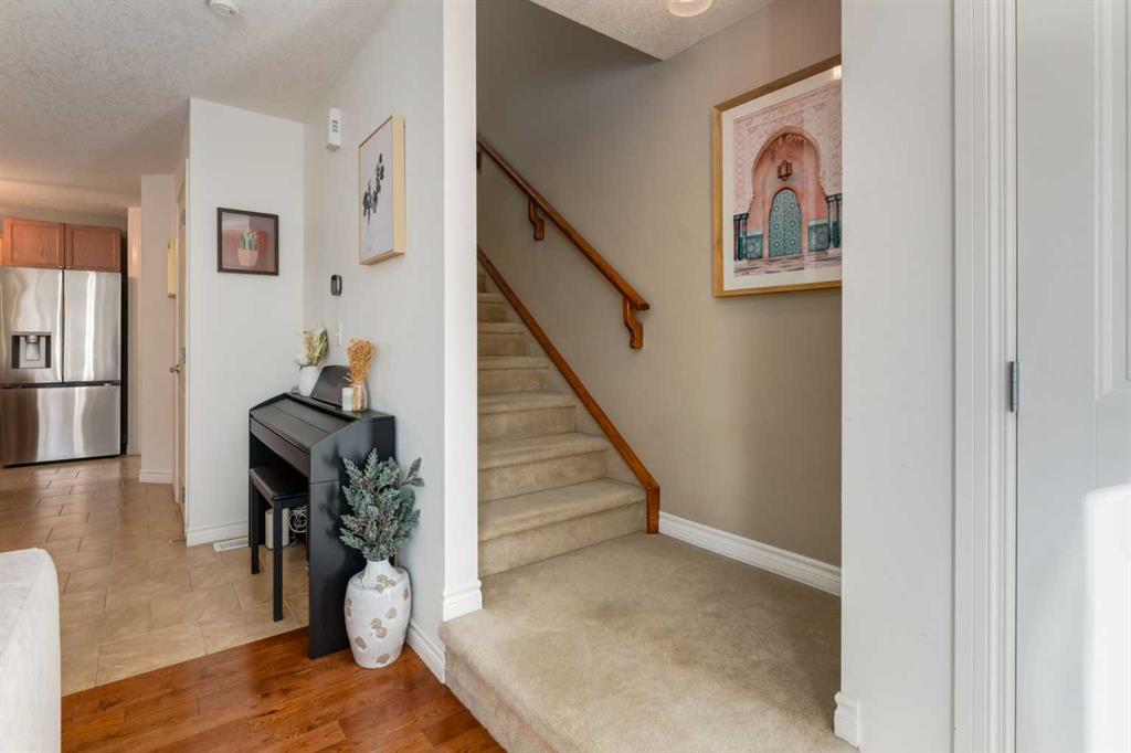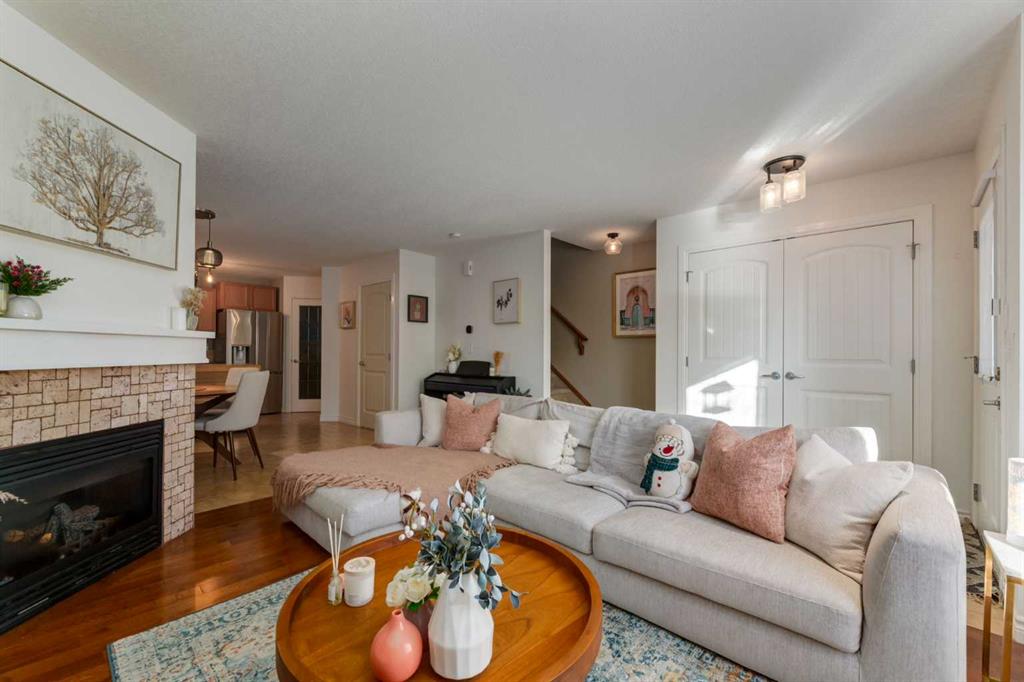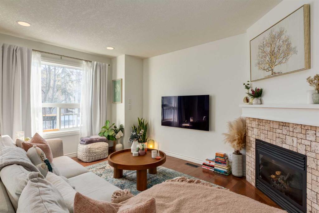 Welcome to this impeccably maintained two storey home, ideally positioned at the front of an intimate four unit complex on a gorgeous, tree lined street! From the moment you open the front door, you’re welcomed by an abundance of natural light streaming through the beautiful south facing window, creating a bright and inviting first impression. Ceramic tile transitions seamlessly into rich hardwood flooring in the living room, where a cozy corner fireplace creates a warm and inviting focal point. The kitchen is thoughtfully designed with newer stainless steel appliances, ample cabinetry and counter space, under cabinet lighting, a large pantry and a spacious dining area; perfectly suited for both everyday living and entertaining. A two piece bathroom completes the main floor.
