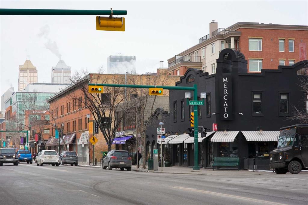 Discover the perfect blend of tranquility and city living in this TOP FLOOR, END UNIT, QUIET, CONCRETE condo offering unobstructed skyline VIEWS! Just steps from the vibrant cafés, boutiques, and restaurants of 4th Street, 17th Avenue, and the scenic Elbow River Pathways, this home places the best of Calgary right at your doorstep while giving you a peaceful retreat above it all.