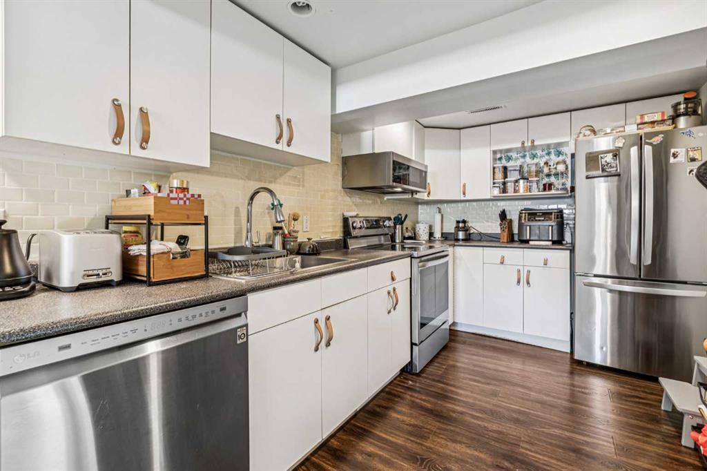 From the moment you step inside, you’ll appreciate the thoughtful design and modern finishes throughout. Harwood Flooring on the main level and wide-plank vinyl flooring throughout the lower level, complemented by all-new appliances, new countertops, custom closet and stylish new cabinetry that elevate both form and function. The inviting living room is anchored by a gorgeous wood-burning fireplace, wrapped in sleek black tile for a striking contemporary focal point. 2 bedrooms upstairs with a 4-piece bath and partial kitchen set up for entertaining upstairs. The full kitchen along with another bathroom, bedroom, laundry room and living room are located in the basement. The main level can easily be converted back into a full kitchen if wanted, however the set up now offers great use of the space!