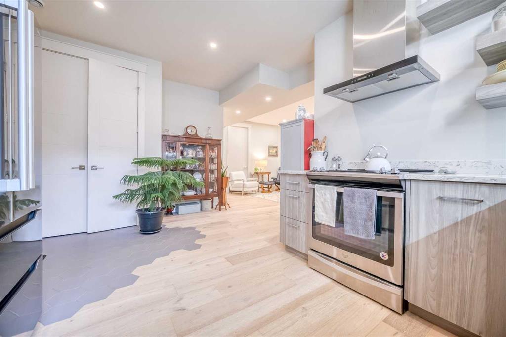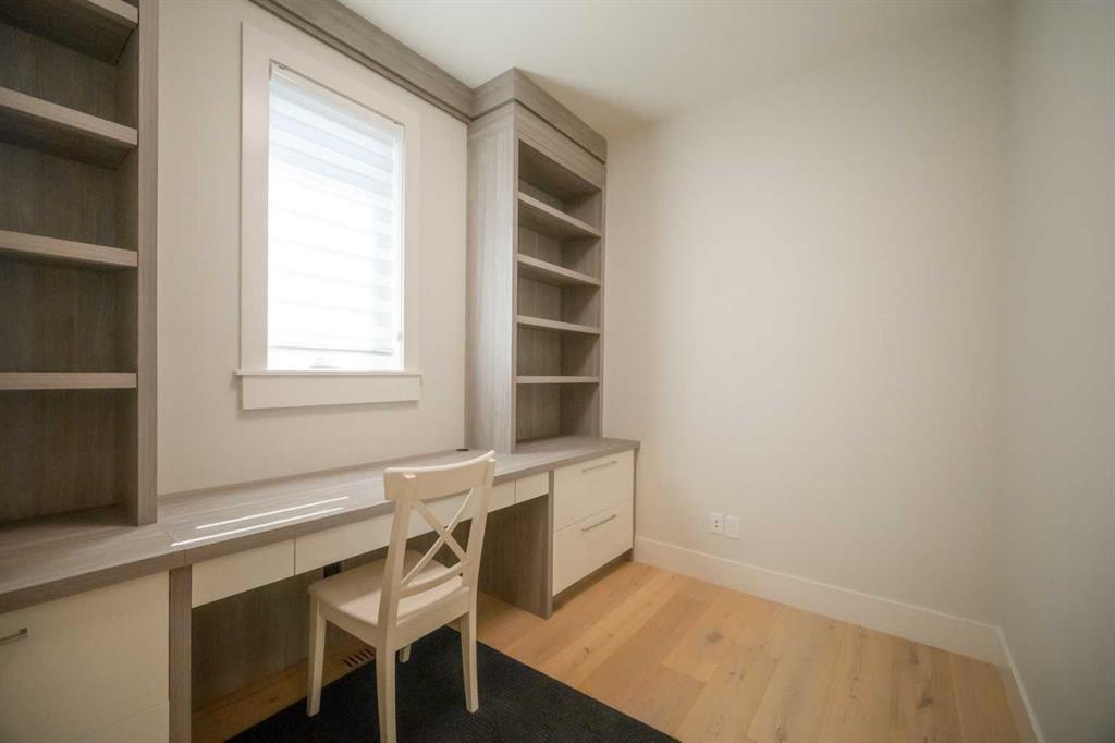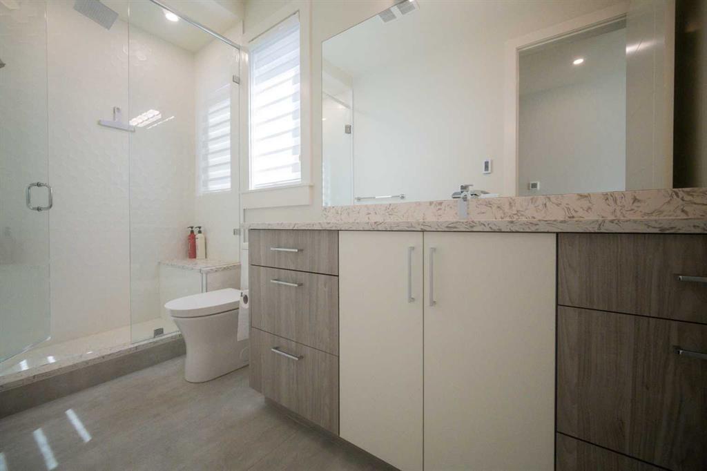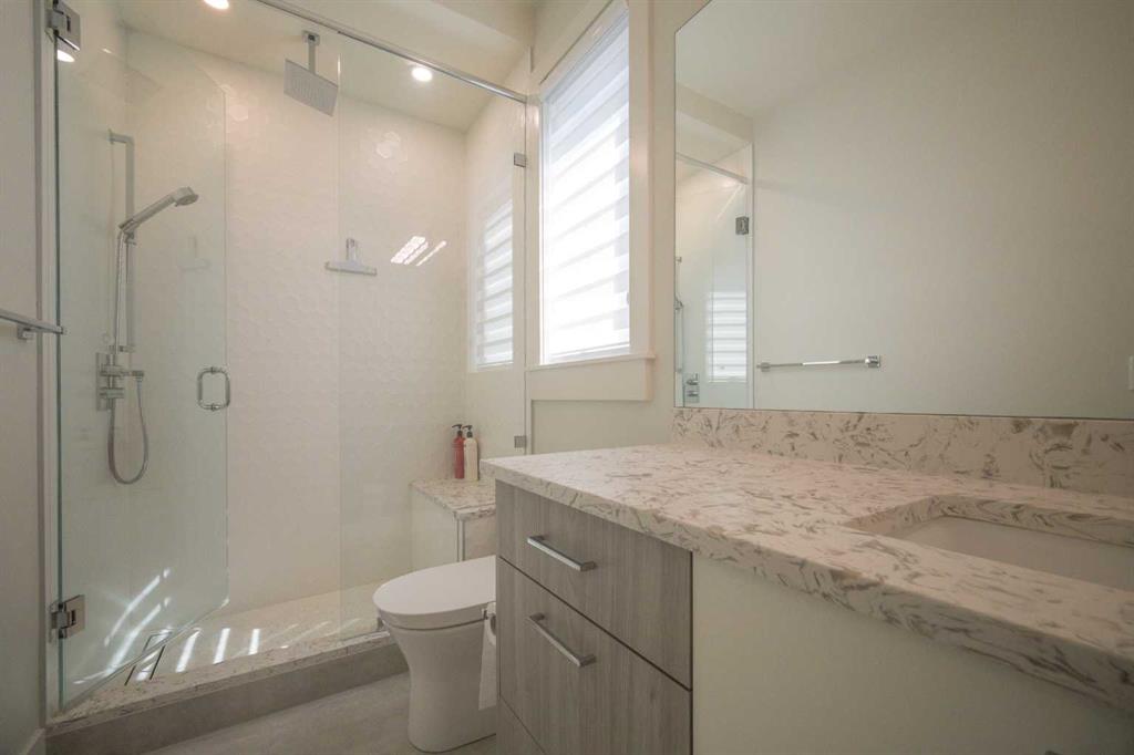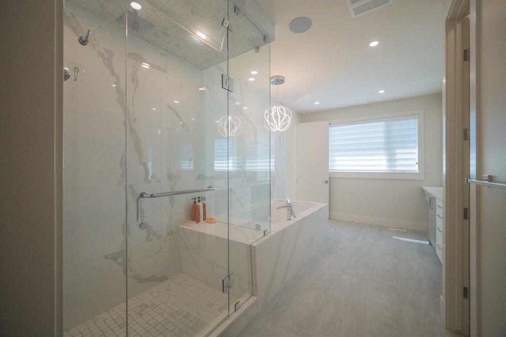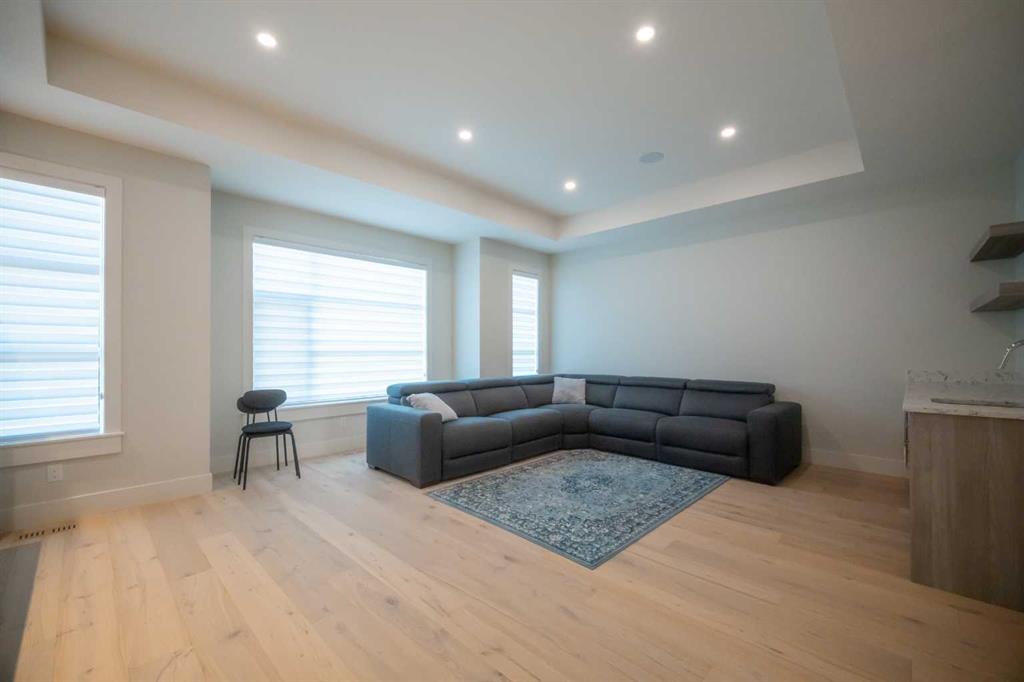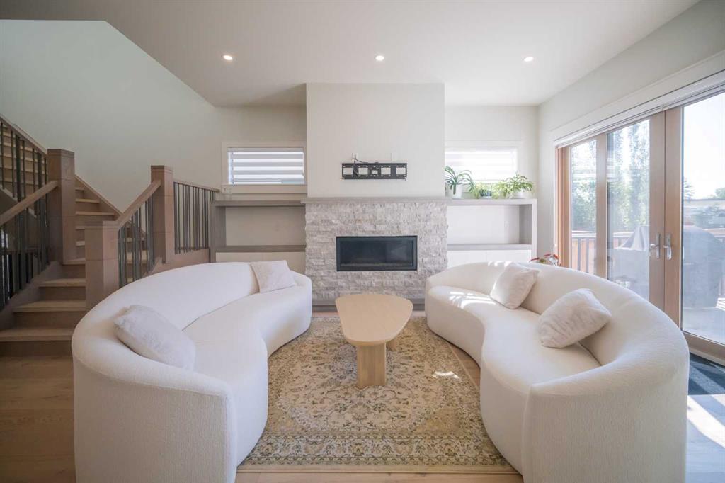 Welcome to this exquisite residence in the highly desirable inner-city community of Winston Heights. Situated on a generous 36.5' x 152' lot, this upscale executive home showcases exceptional craftsmanship and a thoughtfully designed floor plan that spans over 4,300 square feet of luxurious living space, enhanced by soaring 10-foot ceilings. From the moment you enter, you are welcomed by elegant white oak plank hardwood flooring that flows seamlessly throughout the entire home, including the staircase. The stylish chef’s kitchen is a true centerpiece, featuring a large central island, contemporary cabinetry, and High end JennAir stainless-steel appliances. A bright dining nook, framed by two large windows and a chic chandelier, overlooks the landscaped backyard. The spacious living room boasts an elongated gas fireplace with quartz stone surround, flanked by custom built-ins, and oversized sliding patio doors leading to the sunny rear deck—perfect for both entertaining and relaxing. A well-appointed mudroom on the main floor includes a large closet and abundant shelving, offering practical storage solutions for everyday living. Upstairs, the second level features a generous primary suite complete with 9-foot ceiling, a walk-in closet and a spa-inspired 5-piece ensuite that includes double sinks, a luxurious soaker tub, and an oversized steam/rain shower with a bench and 10mm glass enclosure. Two additional bedrooms, a bonus room, a sleek 3-piece bathroom, a dedicated office, and a separate laundry room add both comfort and functionality to this level. The fully developed legal basement suite, enhanced with in-floor heating, offers even more living space and versatility. It includes a spacious entertainment area with a fully equipped kitchen, two additional bedrooms, and a beautifully designed 3-piece bathroom—ideal for extended family or rental opportunities. Step outside to the beautifully landscaped backyard—an ideal setting for gatherings with family and friends. This home is loaded with premium upgrades, including triple-pane windows, basement in-floor heating, an oversized double garage with a 9-foot high door (lift-ready), custom built-ins, solid core doors, built-in ceiling speakers, flat-painted ceilings, programmable Lutron lighting, extra-wide baseboards and trim, and so much more. This is a truly exceptional modern home in one of Calgary’s most sought-after inner-city locations. Book your private showing today!