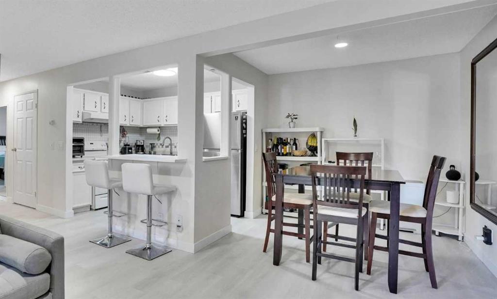 Welcome to 141 Cedar Springs Gardens SW, an exceptional 923 sq. ft. renovated townhouse in the heart of Cedarbrae—offering refined comfort, thoughtful updates, and outstanding value within one of southwest Calgary’s most established communities. Larger than many units in the complex and meticulously maintained, this bright and inviting home features a functional open-concept layout enhanced by durable luxury vinyl plank flooring, a fresh neutral palette, and abundant natural light from its sunny North-facing exposure—perfect for enjoying morning coffee on your porch and garden space. The white kitchen is beautifully updated with sleek cabinetry, subway tile backsplash, generous counter space, and a convenient island that seamlessly connects to the dining and living areas. A cozy fireplace anchors the living room, creating a warm and welcoming atmosphere ideal for everyday living and entertaining. The primary bedroom offers a walk-through closet leading to a private two-piece ensuite, while the second bedroom provides flexible space for family, guests, or a home office. A renovated four-piece bathroom adds modern comfort, and in-suite laundry plus additional freezer space enhance practicality. Rarely found in this complex, this unit offers the opportunity of two heated underground parking stalls—one assigned that comes with the unit, and one additional leased stall ($40/Monthly) located side-by-side—along with bike storage and ample visitor parking. Situated within walking distance to shops, restaurants, coffee spots, schools, parks, playgrounds, and the Cedarbrae Community Centre, residents also enjoy quick access to South Glenmore Park pathways, Fish Creek Park, Brae Centre amenities, Southland LRT, Stoney Trail, and Macleod Trail. Set in a well-managed, pet-friendly complex, this move-in-ready home offers the ideal blend of space, convenience, and long-term investment. Cedarbrae is a mature and welcoming neighbourhood known for its quiet, tree-lined streets and strong sense of community, ideal for families and long-term living