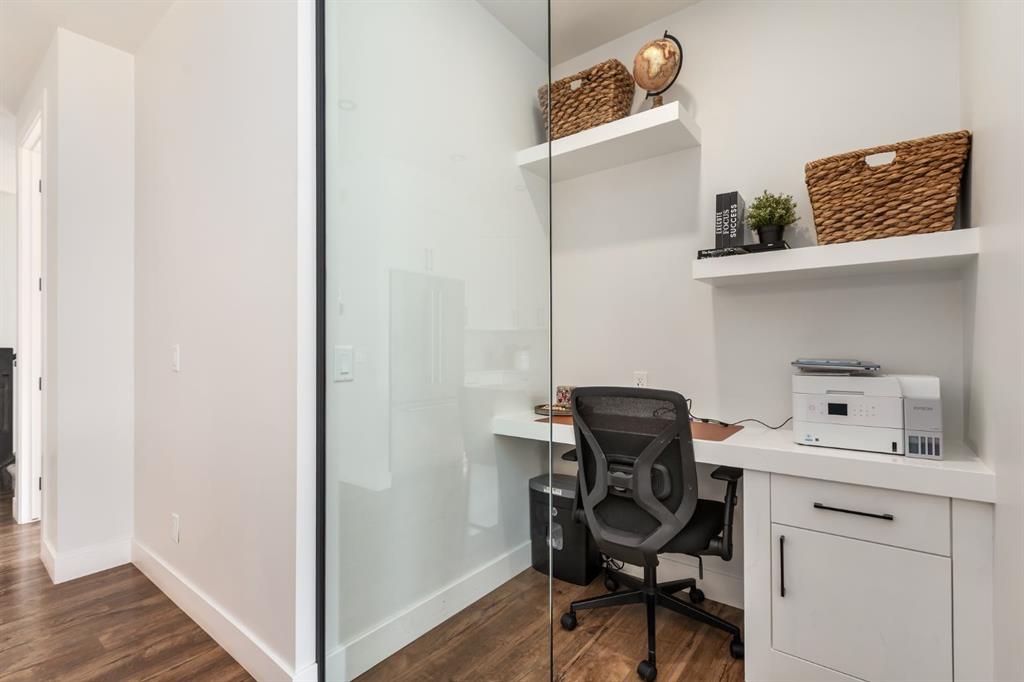 Just off the kitchen, the family room invites you to unwind in style, featuring a dramatic full stone slab feature wall that adds both texture and elegance. A fully enclosed glass-door office provides a bright, inspiring space to work from home. The main floor also offers a bedroom and full bathroom — ideal for visiting parents, a nanny, or older children seeking privacy. And the mudroom off the garage ensures daily life stays beautifully organized.