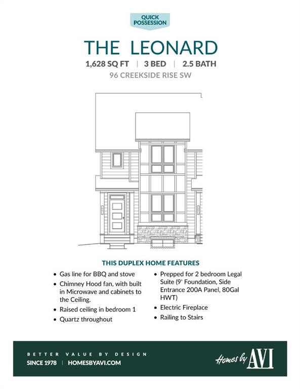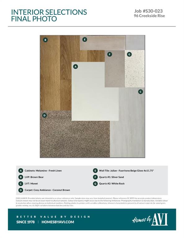 • PLEASE NOTE: Photos are of a DIFFERENT Spec Home of the same model – fit and finish may differ. Interior selections and floorplans shown in photos. Kitchen appliances are included, and will be installed at possession.